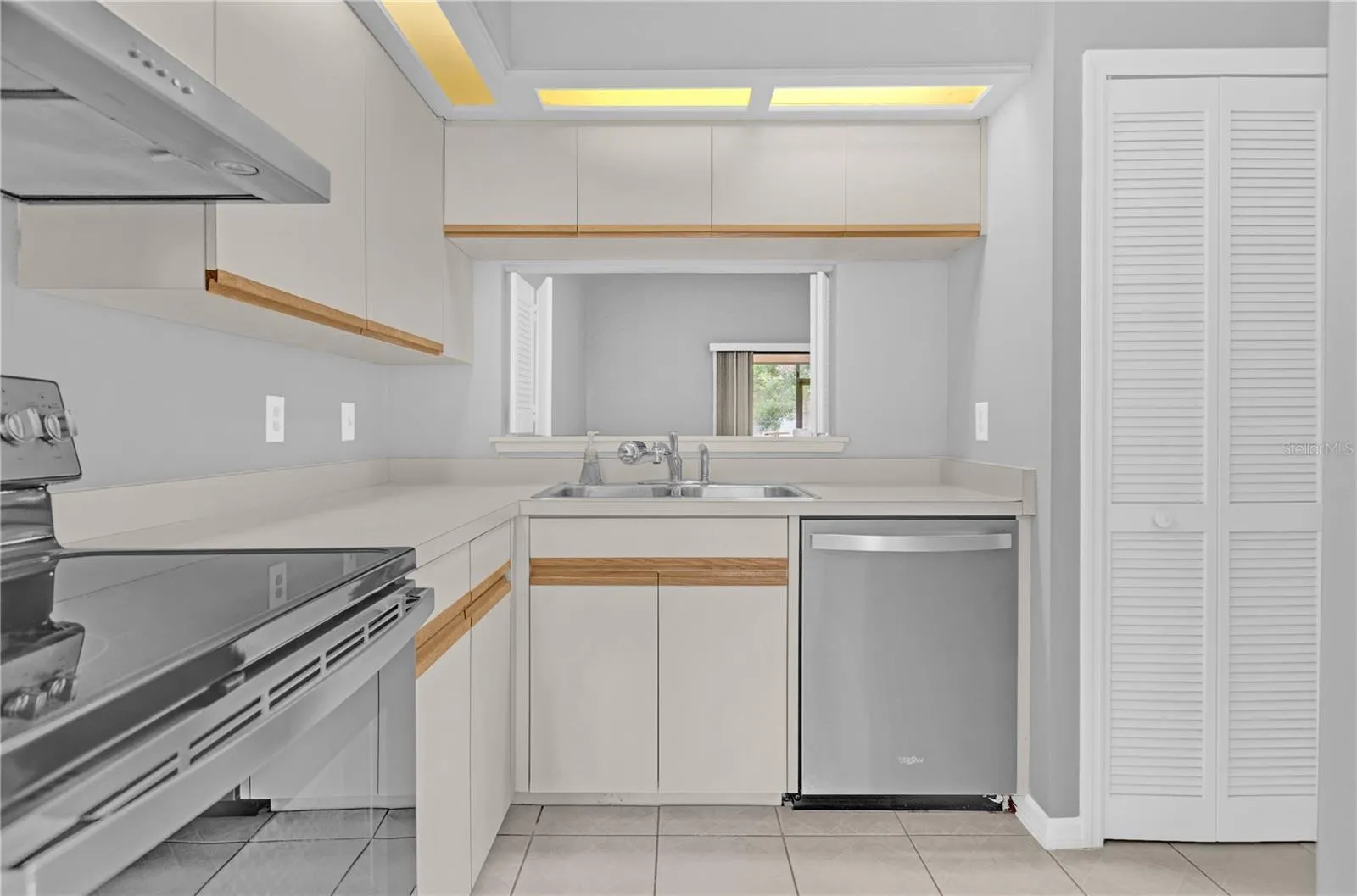 The kitchen is equipped with a new Whirlpool stainless steel refrigerator, black top range, dishwasher, and dual sinks. Plus, a Whirlpool washer and dryer are included for your convenience.