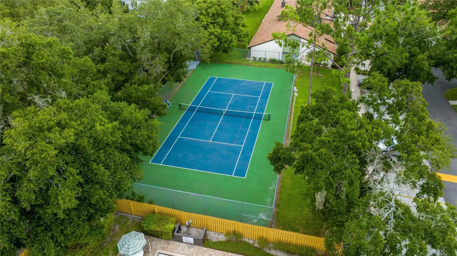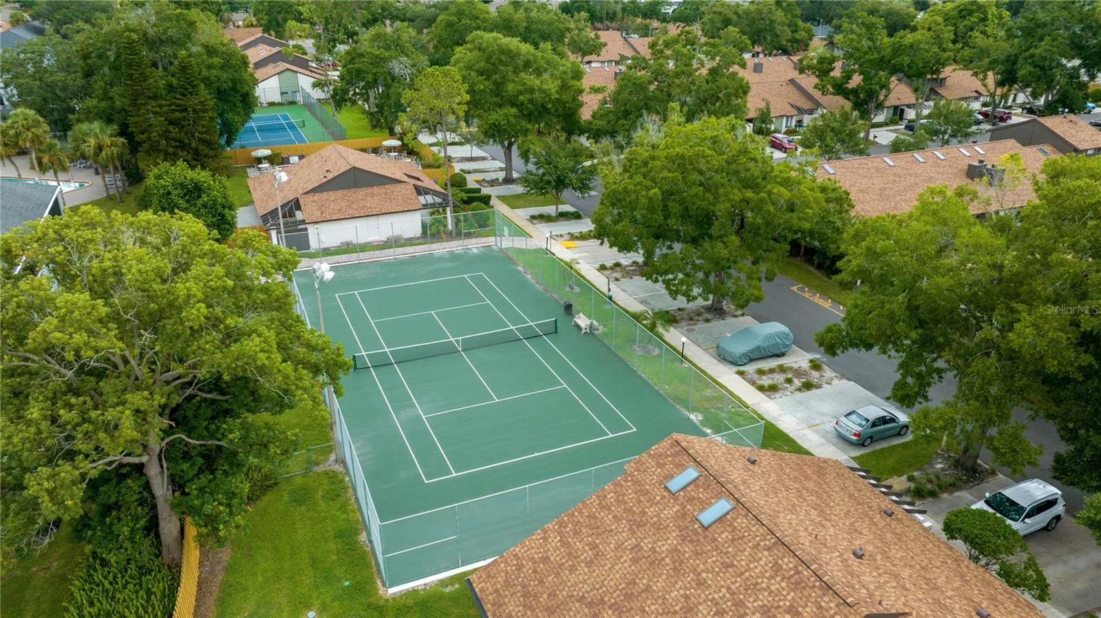 Community amenities include resurfaced tennis courts, a pool, and a clubhouse, plus a relaxing newly screened-in back porch for outdoor enjoyment.