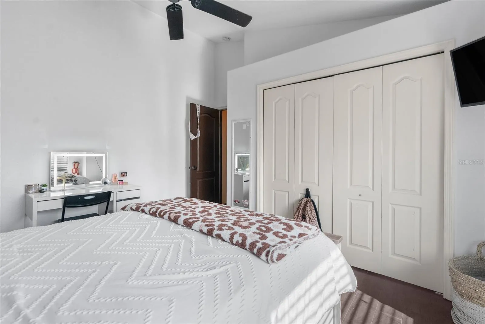 The detached guest house/in-law suite has a bedroom/studio with large closet with is basically as big as an extra room + full bathroom!!