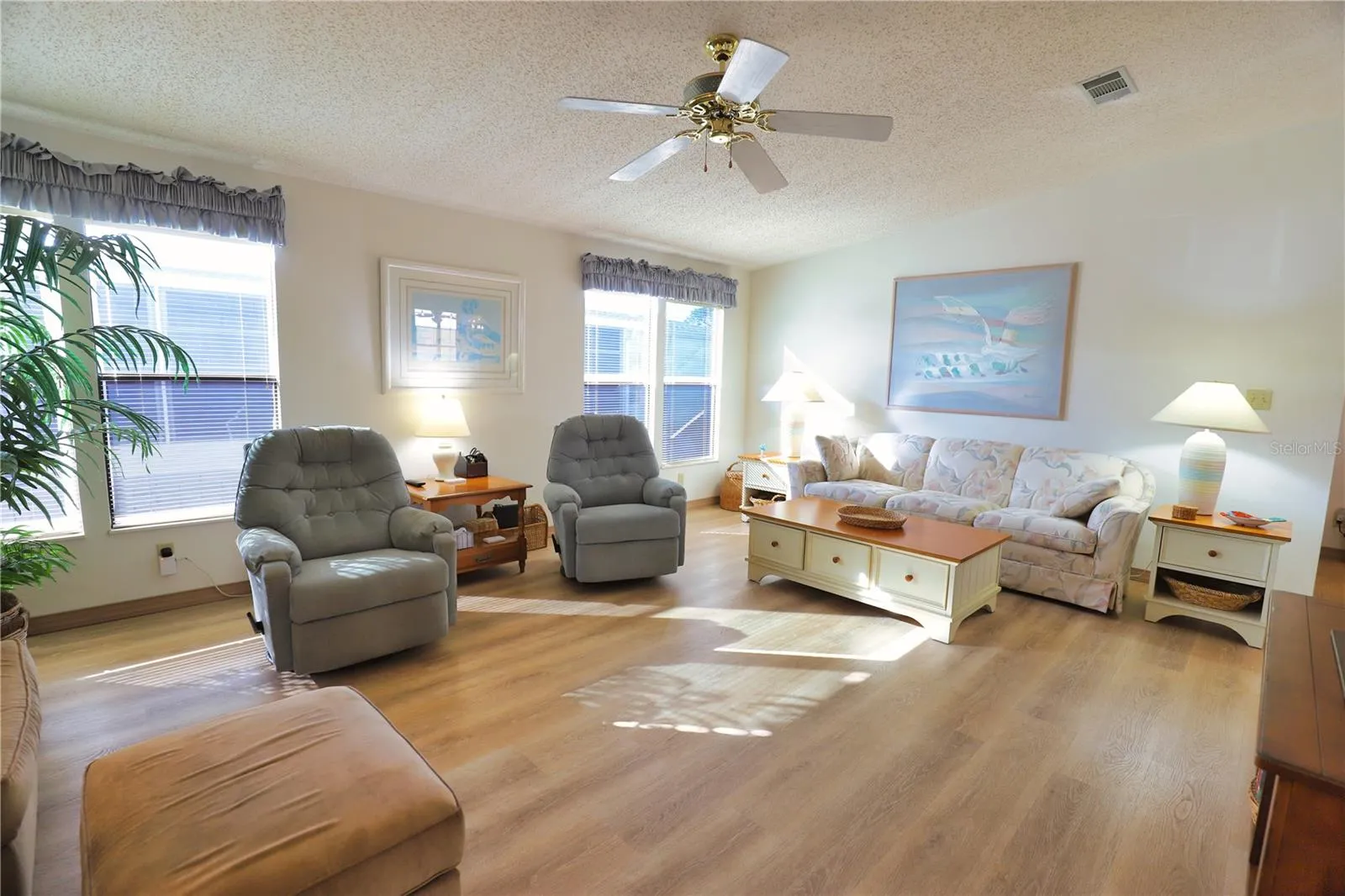 Don’t miss your chance to own a piece of paradise! This must-see home has a unique split bedroom floorplan. The large living opens to the dining room / kitchen combination which makes it the perfect home for entertain guests. Off the dining room is the Florida Room which is ideal for additional entertaining, or enjoying your beverage of choice on those cooler evenings. Both the primary bedroom with an ensuite bathroom and the guest bedroom are extremely roomy and provide their occupants with lots of privacy. Among the many pluses to this home are an AMS Aluminum Roof in 2021, tie downs and vapor barrier in 2021, a York A/C in 2020, rescreening of the lanai in 2023 and the exterior of the home repainted in 2023. Another distinctive characteristic to this home is the generously sized laundry room with a window for natural light. This home will make all of your Florida dreams come true and it’s located in the pet area so your furry friend will be able to enjoy paradise with you!