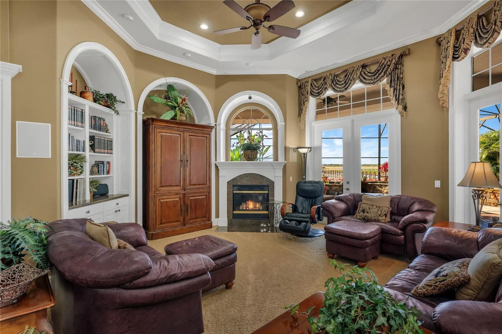 Experience breathtaking Florida LAKEFRONT SUNSETS from this stunning and unique custom home in the exclusive gated community of Sunset Pointe. Situated near shopping, DISNEY/UNIVERSAL/SEA WORLD, major transportation, hospitals, LAKE NONA, and NEO CITY and nestled amongst only 14 properties, this secluded oasis offers the perfect blend of privacy, security and convenience. On the shores of West Lake Tohopekaliga, the home is adjacent to a conservation area and is connected by a walking/biking path to historic Downtown Kissimmee, where you can catch a SunRail train to downtown Orlando/Winter Park, launch a boat from the marina, take in entertainment at the lakefront park, indulge in local dining, enjoy the nightly fireworks on the horizon from the attractions, celebrate the 4th of July with a spectacular view of the City fireworks, or catch the SpaceX launches from the front yard. The ORLANDO INT’L AIRPORT is just 16 miles away, and COCOA BEACH is a 60-mile drive. The low maintenance exterior of the home boasts a barrel tile concrete roof and genuine Tennessee fieldstone, which carries through to the waterfalls in the lagoon-style saltwater pool and hot tub overlooking the lake. Step inside and discover a world of comfort and elegance. The primary suite features dual walk-in closets and vanities, a deep jetted tub, shower with dual heads/slide bars/seat, and direct access to the lanai. The updated kitchen is a chef’s dream, boasting SS Bosch double oven and dishwasher, KitchenAid glass cooktop, a Samsung 4-door refrigerator, cast iron Kohler sink, prep island, instant hot water dispenser, wine rack, pull-out trays, tilt-out trays and granite countertops. The spacious utility room has a laundry tub, built-in cabinetry w/desk, solid surface countertops, a washer/two dryers, built-in ironing board and built-in laundry hampers. Additional highlights include spacious 12′ ceilings throughout, transom windows, bay windows, crown molding, architectural trim with tray/coffered ceilings, a gas ventless fireplace, 3 bookcases, custom louvered shutters and abundant storage. The hone boasts a 3-zone energy-efficient A/C system and 80-gallon hot water heater with recirculating pump, water filtration system with ozonator, carbon filter and softener-no expensive water bills! The garage measures over 1500 sf with 3 oversized doors (10×10 and 12×13), 12′ and 14′ ceilings, and a deep center bay for an RV/boat/antique car. It’s also wired for EV charging and offers ample storage space, including abundant shelving, two huge closets, a utility sink/cabinet above and attic storage. Room for all your tools and toys! Indulge in the ultimate entertainment experience with surround sound prewiring in the family room and primary bedroom, speaker prewiring on the lanai, intercom system and in-wall/ceiling speakers with volume controls throughout the home. Smart wire and dimmer switches, Google Nest(R) doorbell, LED lighting and automatic night lights provide some of the latest technology and conveniences. If you enjoy spending your leisure time fishing, boating, bird/nature-watching, playing pickle ball or simply relaxing by the lagoon-style saltwater pool with fountain and waterfalls, you won’t want to miss the opportunity to own this custom home of unparalleled quality and luxury. No expensive CDD fees and not in a flood zone!