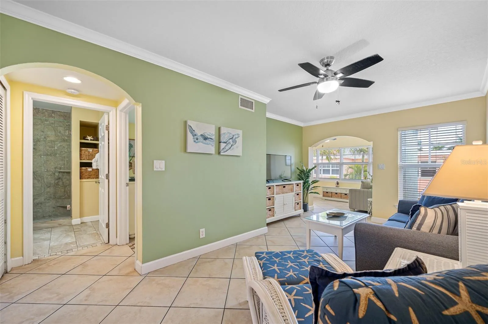 SECOND FLOOR CONDO…HIGH AND DRY…no damage from recent storms to this unit! PARADISE FOUND IN INDIAN SHORES…nestled between the Gulf of Mexico and the Intracoastal Waterway. FULLY FURNISHED TURNKEY BEACH CONDO with 1 Bedroom, 1 Bath and BONUS SUNROOM offering INCREDIBLE LIGHT and potential to SLEEP 6. This COASTAL INSPIRED unit is immaculately UPDATED AND TURNKEY. Open Floor Plan with ceramic tile floors, gleaming white crown molding, white wood cabinetry, closets galore, and coastal furnishings. Large bathroom with built-in linen storage, walk in fully tiled shower walls, and upgraded frameless glass shower doors. Living Room is centrally located between the dining and sunroom offering a dry bar and flatscreen TV. Sunroom is perfect for guests with a sleeper sofa or can be used as an OFFICE. FULLY EQUIPPED KITCHEN with granite counters, Keurig coffee maker, full-size appliances and brand NEW dishwasher. Cable & Internet are included in your HOA fee. Barefoot Beach offers everything you could dream and more just steps from your front door. A true WATERFRONT OASIS with LUSH LANDSCAPE featuring HEATED POOL, SUN DECK, new community FISHING DOCK, BBQ Grills, outdoor dining areas, multiple laundry facilities in every building on every floor, bike storage, club room, and PRIVATE BOAT SLIPS are subject to availability for rent or purchase AND the BEST Part…PRIVATE DEEDED BEACH ACCESS with a signaled cross on demand. NO RENTAL PERIOD RESTRICTIONS. An ideal INVESTMENT PROPERTY, SECOND HOME or PRIMARY RESIDENCE. This complex does not require or limit the days an owner can use their unit. For your convenience, there is an on-site property management company should you choose to use them, or you can choose another rental company or rent the unit yourself. Barefoot Beach is located on 5 ACRES along 400 FEET of INTRACOASTAL WATERWAY. Located in the QUAINT BEACH TOWN of INDIAN SHORES on the Gulf of Mexico with nearby dining, shopping, miniature golf, and WHITE SUGAR SAND BEACH. Just steps from your front door is the SUNCOAST BEACH TROLLEY that will take you up and down the Pinellas Beach Coast. Close to John’s Pass, Downtown St. Pete with restaurants, night life, museums and famous pier. Two International Airports to serve you. TIA is 45 minutes and PIE is 25 minutes. The unit has future bookings that must be honored by the new owner. Good Rental Income and is perfect for a 1031 Exchange. Floorplan photo #38.