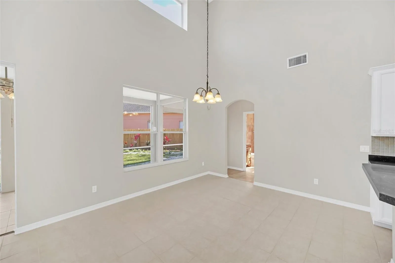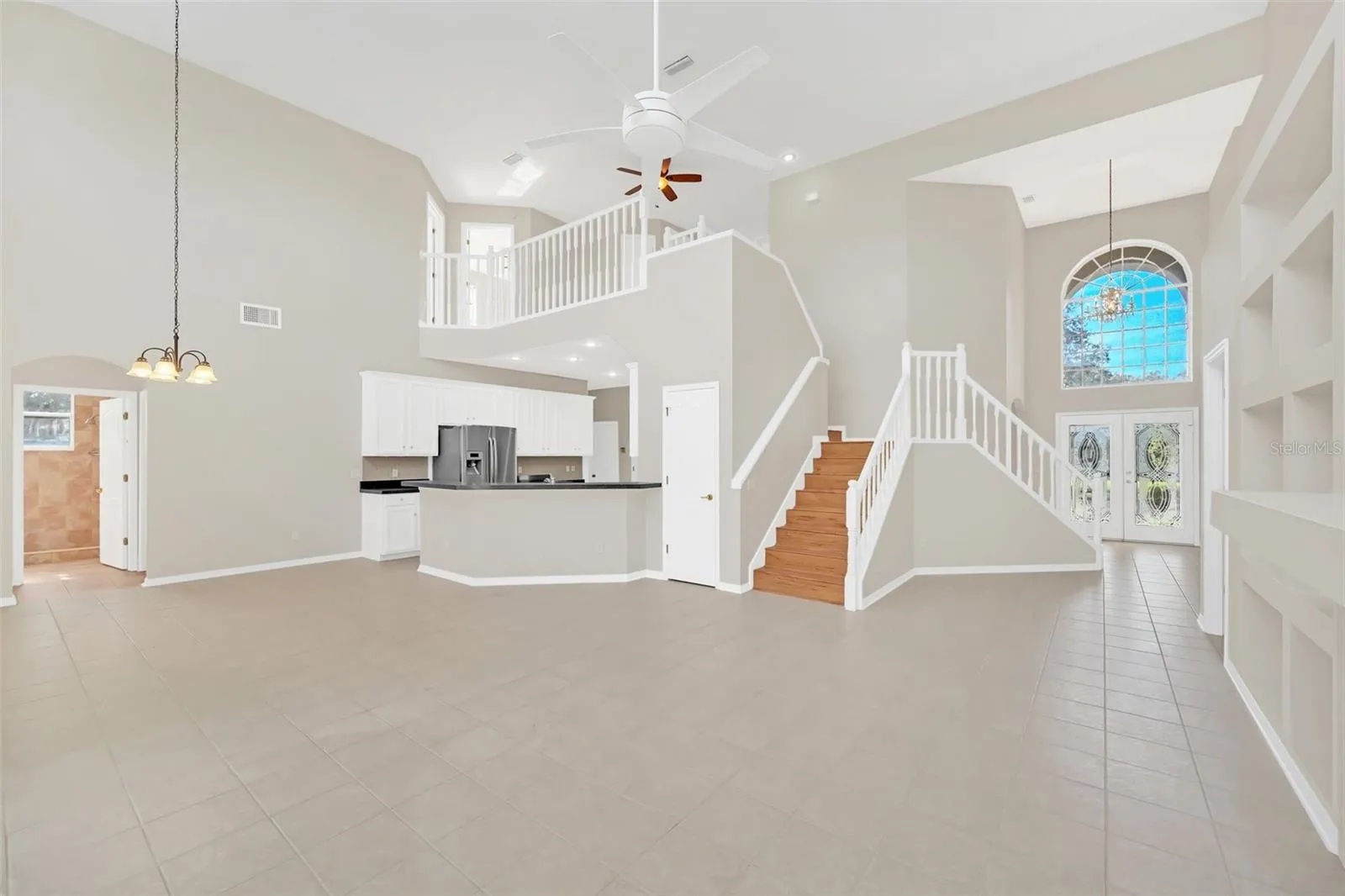 As you step inside, you’ll be immediately impressed by the open floor plan, highlighted by soaring 17-foot ceilings that invite natural light to spread throughout the entire interior, creating a bright and welcoming atmosphere.