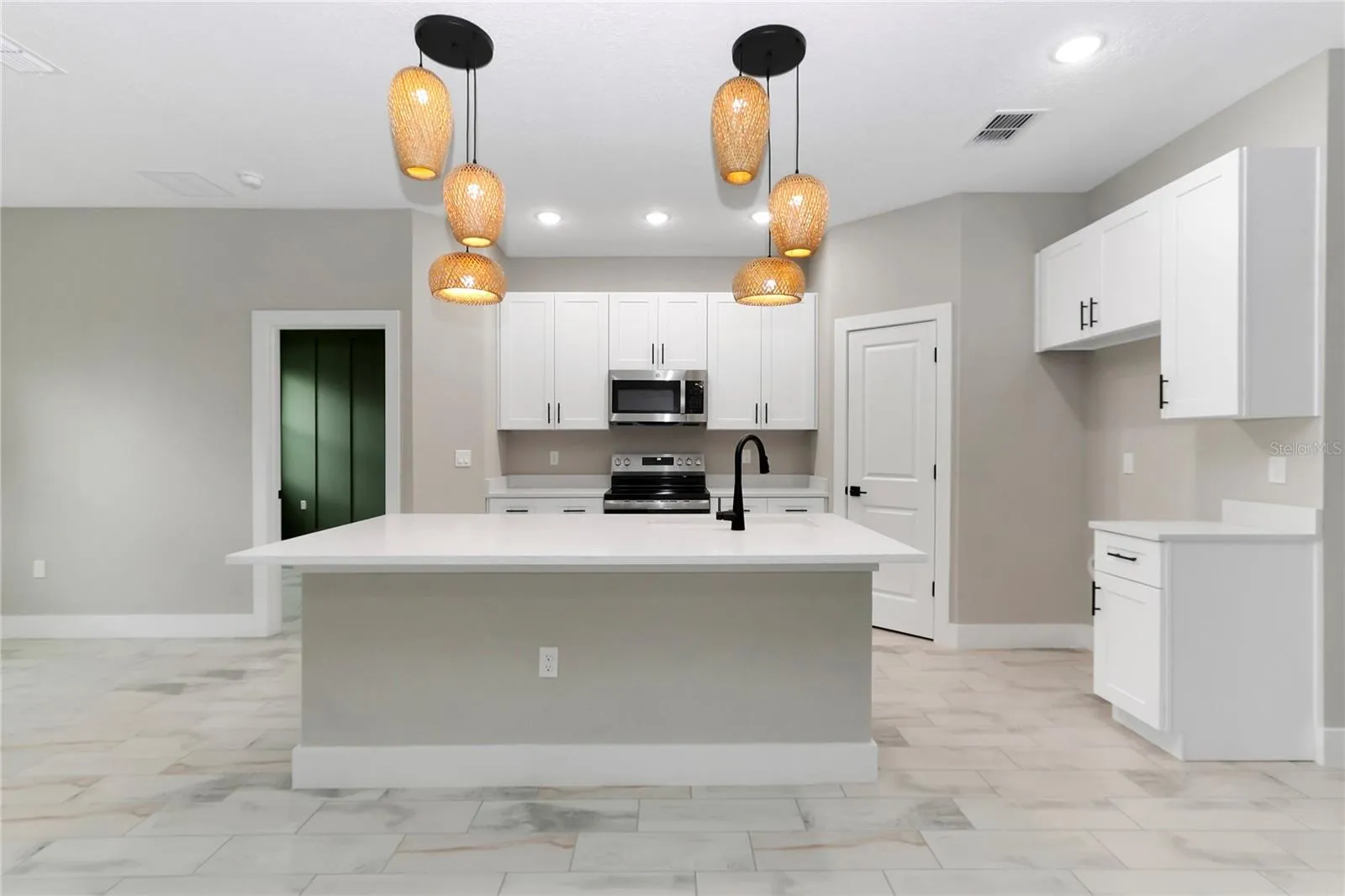 Step inside to find a bright and inviting open-concept layout featuring a white kitchen with quartz countertops, soft-close drawers, and upgraded finishes throughout. The all-tile flooring adds durability and elegance, making maintenance a breeze.
