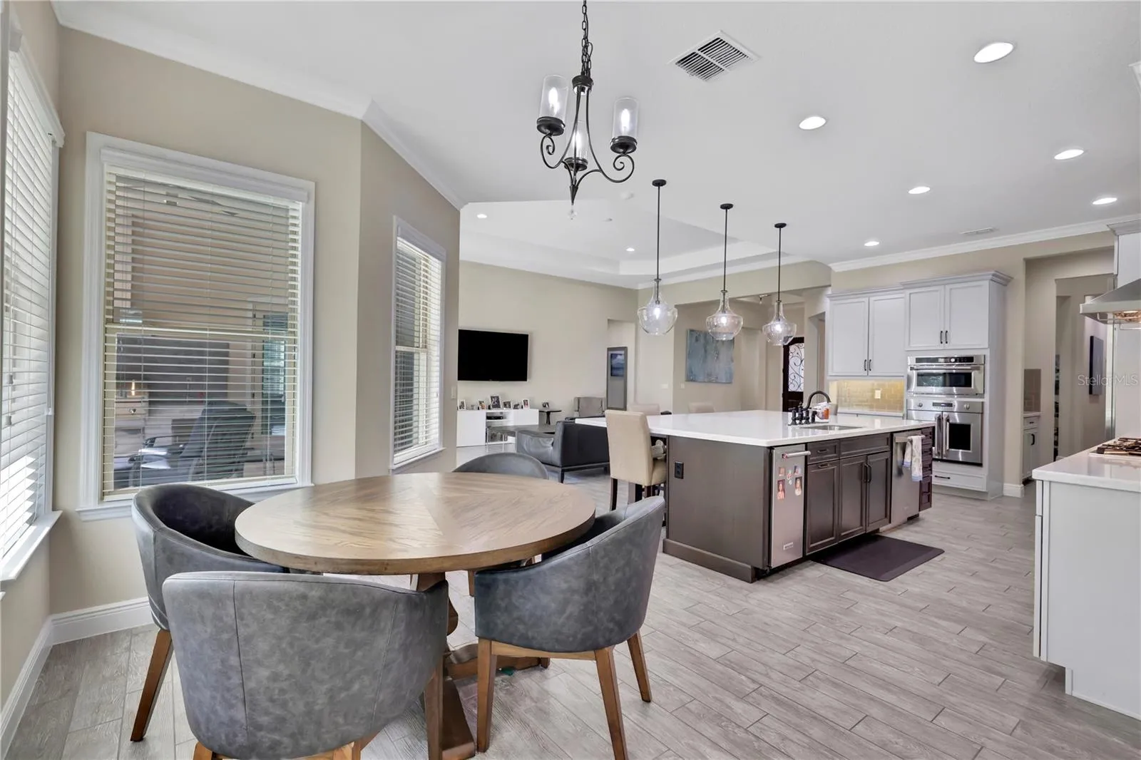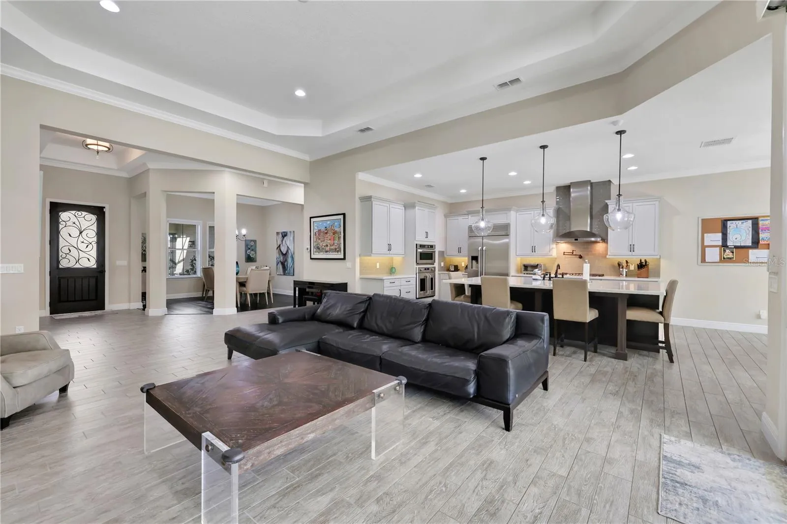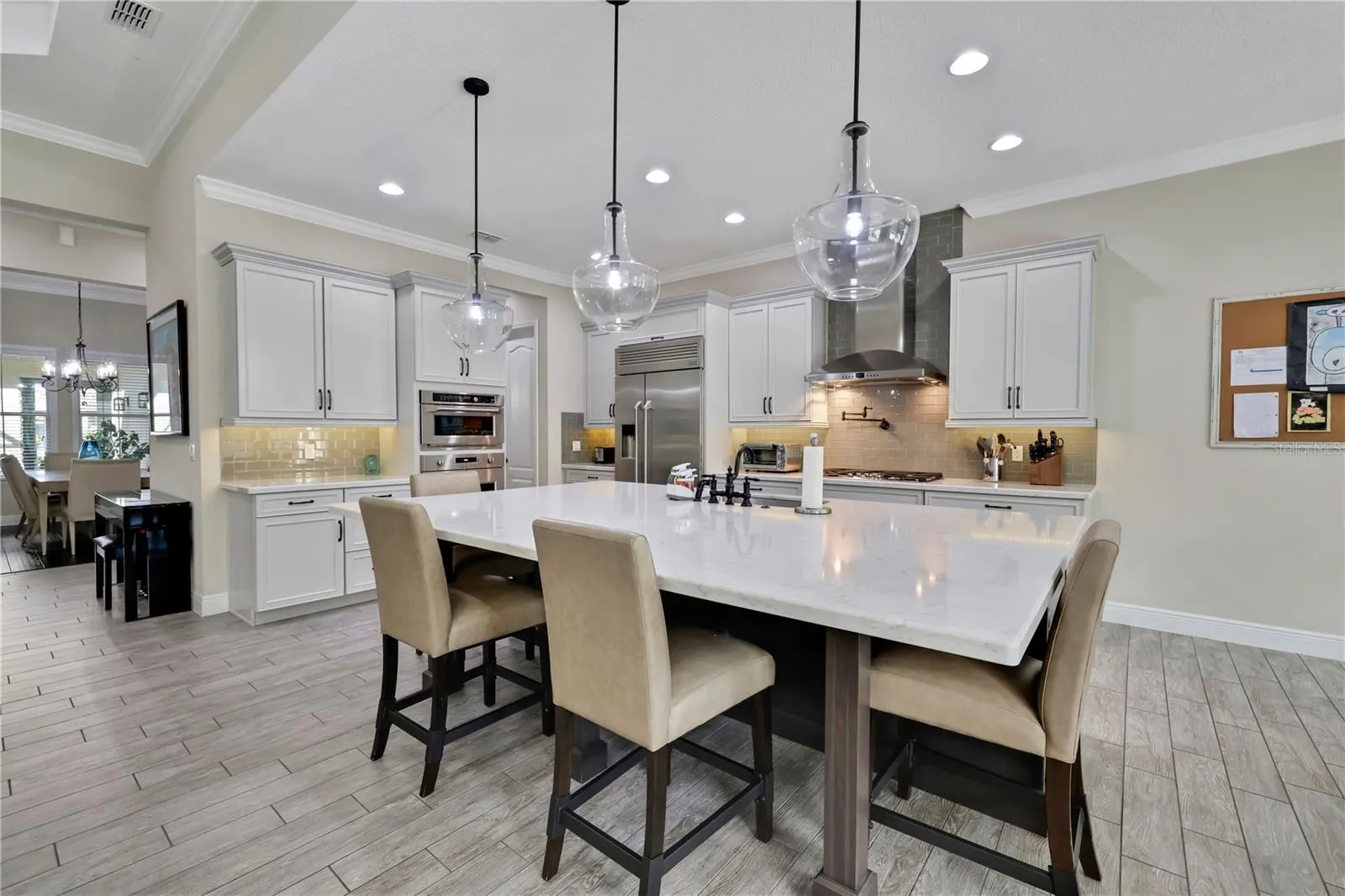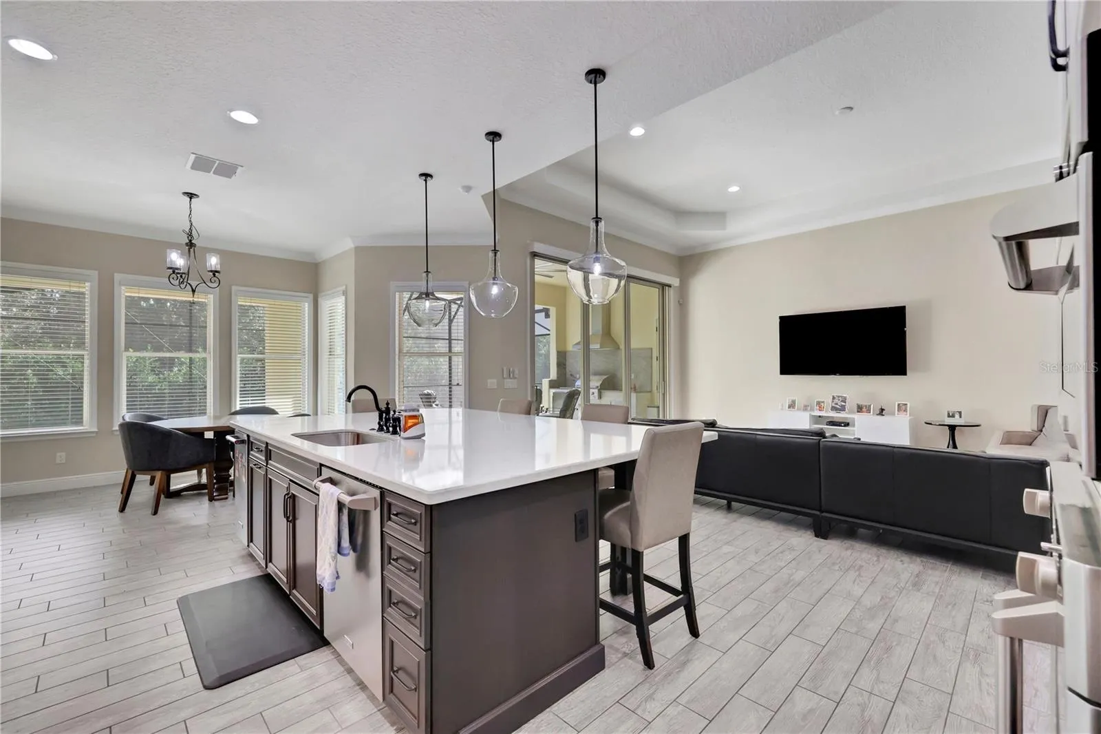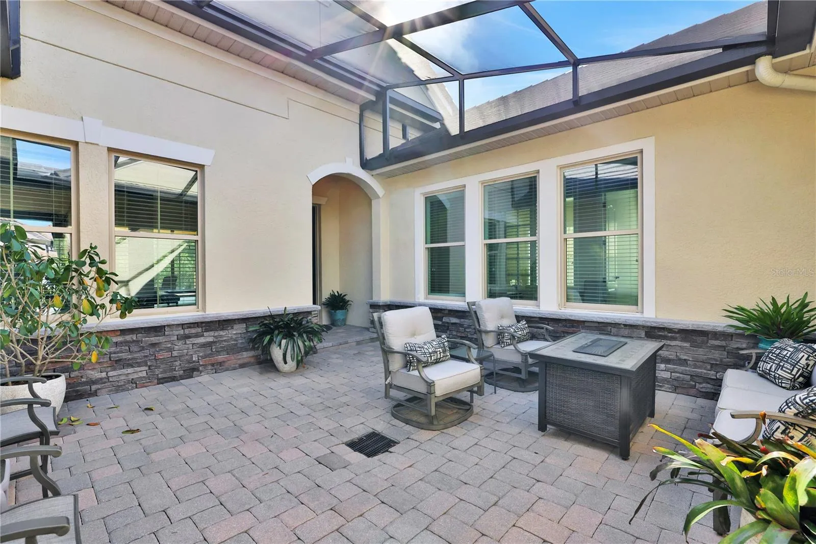Immaculate one-level “Monte Carlo” floor plan with 40′ HEATED pool nestled in gated Steeple Chase, built in 2018. Why wait to build when this better-than-new 4 bed, 4 bath home complete with office and flex space with NO REAR NEIGHBOR and incredible privacy is ready for you right now – all with energy-efficient construction and materials. Arrive at a brick paver circular drive affording ample parking when you need it, as well as an elegant elevation giving this home major curb appeal. With its incredible versatility, this home gives you the option of two separate screened-in outdoor areas to enjoy – the front courtyard with brick pavers is fully screened in and offers a cozy and private outdoor space to gather with friends and family, while the astonishing 40′ saltwater heated pool in the backyard is framed in with an oversized screen enclosure and features incredible privacy with no rear neighbors. The covered rear entertainment area boasts travertine pavers surrounding the pool and under the covered lanai, as well as a brand-new summer kitchen with refrigerator, and a BRAND NEW electric shade with LED light! Soaring ceilings along with an open design concept make Taylor Morrison’s “Monte Carlo” an award-winning floorplan, and it’s evident why. 10′ sliding doors insulate the home from sound and the elements alike, while the electronic shades let the light in when you want it. The chef’s kitchen showcases an oversized center island with space for the family, as well as a 42″ built-in Monogram refrigerator, Monogram oven, natural gas cooktop, microwave/convection combo, AND built-in custom ice maker ideal for entertaining. The master suite is a destination unto itself privately tucked away, and features dual vanities in the spa- like master bath, custom closet systems in the oversized walk-in closet, and even a sitting area overlooking the pool and private rear. A guest suite is privately situated near the front of the home and has its very own ensuite full bath and walk-in closet. The oversized laundry room has copious storage; a theme echoed throughout the entire house. Truly too much to list; a must-see! Steeple Chase is among Central Florida’s premier new home communities with a strong sense of presence that begins at the landscaped, gated entry. Mature trees, site ponds, views of Lake Linden, and pocket parks throughout the community create a naturally serene setting. Residents will have direct access to the Seminole Wekiva Trail, a 14-mile paved recreational trail that is part of the Florida National Scenic Trail. Nearby employment centers include the Lake Mary business corridor, two miles from the community, along with many national and international firms including Mitsubishi, AT&T, and Chase. The community is served by a number of leisure and entertainment venues such as Colonial Town Park and Park Place at Heathrow, which boast trendy eateries, boutiques, a Publix supermarket, a movie theater, as well as essential services. This property may be under audio/visual surveillance.