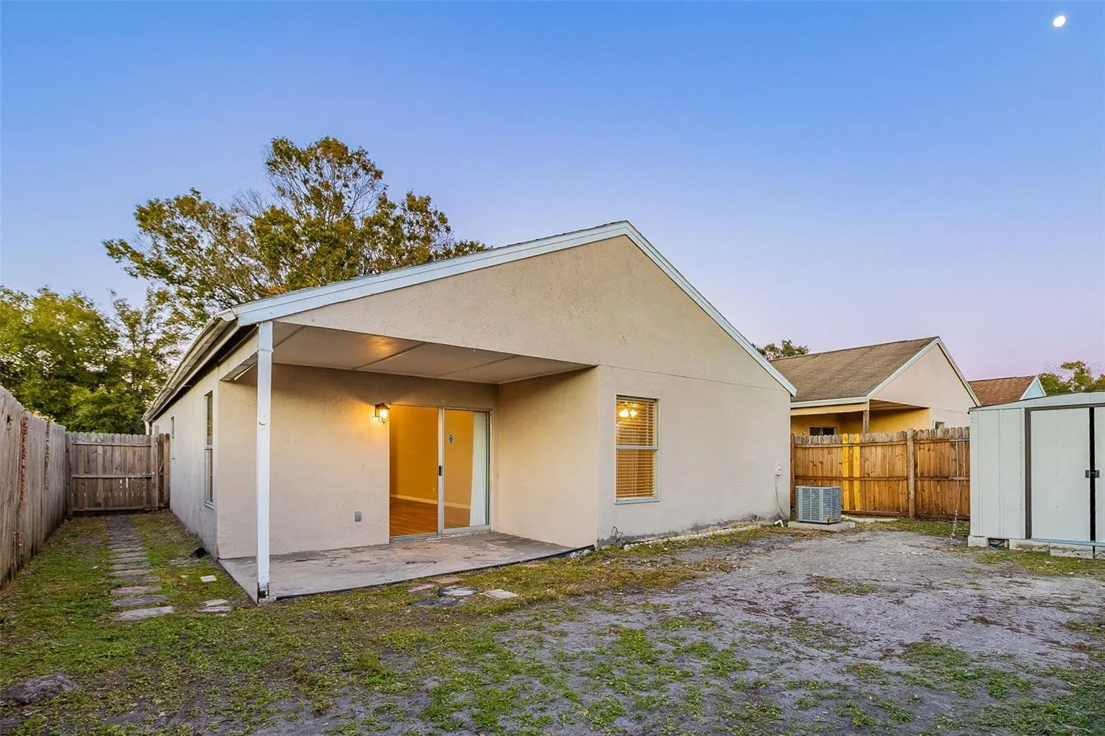 The kitchen is a standout, showcasing sleek stainless steel appliances, elegant granite countertops, and classic white cabinets that create a bright and inviting space for cooking and entertaining. The bathroom features stunning granite countertops and white cabinets, creating a clean, contemporary feel. Step outside to the back porch, offering a peaceful space for outdoor relaxation, dining, or enjoying your private backyard. Additional features include a 1-car garage for convenience and extra storage. This home is a true gem — ready for you to move in and enjoy! Don’t miss out on this wonderful opportunity to own this home, schedule your showing today! CORPORATE SELLER – NO INFO ON ROOF/AC/SYSTEMS AGES.