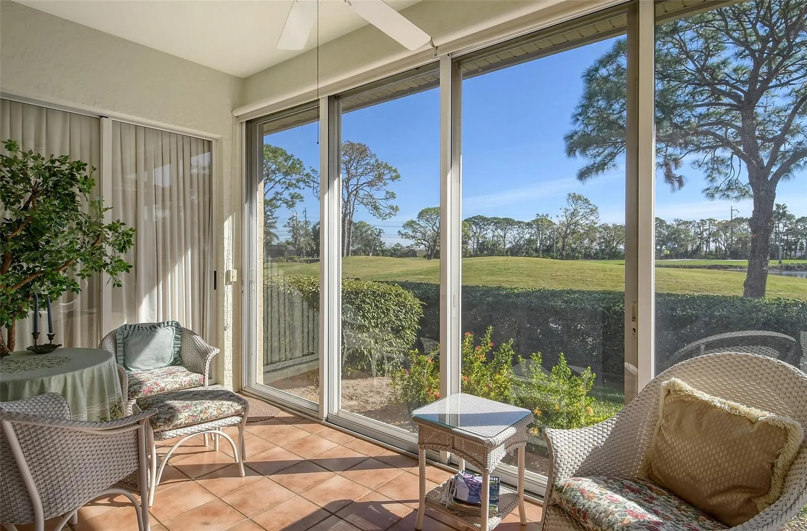 This beautiful villa sits at the end of a dead-end street, a few steps from the community pool and has stunning lake and golf course views. As you enter the walkway you are greeted by a gated entry gaining access to the front loggia that is accented with pavers and leads to your private entrance. The grand foyer is large and is the perfect space to display your art or family heirlooms. The kitchen has been professionally updated with stunning finishes and features high-end appliances. There is an office or den off the kitchen through dual pocket tiffany doors. The guest bedroom is spacious and provides a view to the front lanai. The living room and dining room provide for gracious living and entertaining allowing expansive views of the golf course and lake. Golf views are also from the primary suite with its large bathroom and walk-in closet. This home features high ceilings throughout, extensive levels of crown moldings, elegant features and finishes and is perfect for year-round living or as a wonderful getaway home for seasonal or frequent visitors.