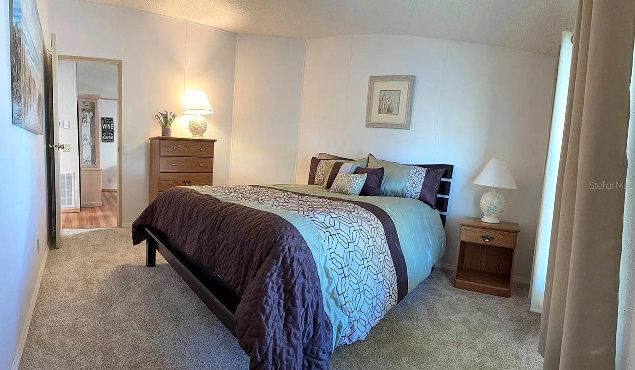 Look at this beautiful move-in ready TURNKEY home that also includes a Golf Cart! BRAND NEW Vinyl Siding, House Wrap, and High-Efficiency Double Pane Windows just installed. This home is located in Punta Gorda’s wonderful Burnt Store Colony (an over 55 gated community). This is one of the larger homes within the community. No Flood Insurance is needed. A land Park Share with a value of $32K is also included with the home. This 2 bedroom / 2 bath home plus Den is full of wonderful features and large living areas. The home includes a new carport installed in 2023 with anchors attached to the carport for extra support. The spacious stamped concrete driveway has plenty of space for two cars plus golf cart parking. The FRESHLY PAINTED open living area has vaulted ceilings, plenty of natural light, and large rooms. The Kitchen has plenty of cabinets, resurfaced countertops, a built-in pantry, stainless steel appliances, skylight, and an eat-in dining area. The FRESHLY PAINTED dining room has a large dining table and hutch/cabinet. The master bedroom is oversized with a very large closet with plenty of storage. The master bathroom includes a walk-in shower with built in seat, linen closet, skylight, and large vanity. Your guests will enjoy their large bedroom and spacious walk-in closet. The guest bathroom has a tub/shower combo and vanity. The convenient INDOOR LAUNDRY includes front-load washer and dryer, cabinets, and a storage closet. Enjoy your Florida mornings having coffee on the lanai that has BRAND NEW high-efficiency windows and central AC. This room includes two fold-out single beds for additional guests. The extra-large Den features plenty of natural light and space for hosting gatherings.