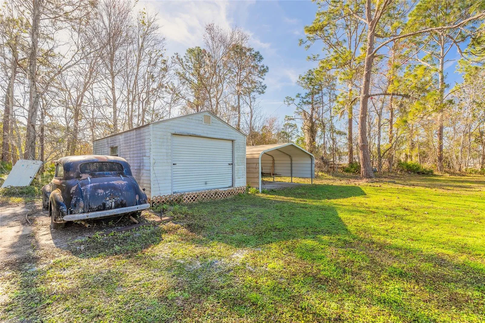 Motivated Seller. Escape to the tranquility of rural New Smyrna Beach with this charming 5.5-acre property that combines country living with convenient access to modern amenities. Located just 25 minutes from the beach and Sanford Airport, this property offers the perfect blend of privacy and accessibility. The 3-bedroom, 2-bathroom home features high ceilings, a split-bedroom floor plan, a cozy fireplace, and an interior laundry room. The spacious owner’s suite includes a large walk-in closet and an updated en-suite bath, while the additional bedrooms also offer walk-in closets and generous space. While the home is solidly built and functional, it does need some updates to modernize it and bring out its full potential. The property is a dream for hobbyists, animal lovers, and outdoor enthusiasts. It includes a pole barn wired for a car lift, a workshop/garage with power, two carports, and a powered shed for ample storage. Additionally, there’s an RV pad with 30-amp service and its own septic tank. The land is beautifully graded and well-suited for horses, goats, chickens, or any other furry friends, making it ideal for a homestead or personal retreat. While offering the peace of rural living, the property remains close to essential conveniences like shopping, medical facilities, and grocery stores. Whether you’re looking to create a hobby farm, store your RVs and boats, or simply enjoy the open space, this property has the potential to make your dreams a reality. With a little updating, this home could truly shine. Home is being sold As is. Don’t miss this unique opportunity—schedule your showing today!