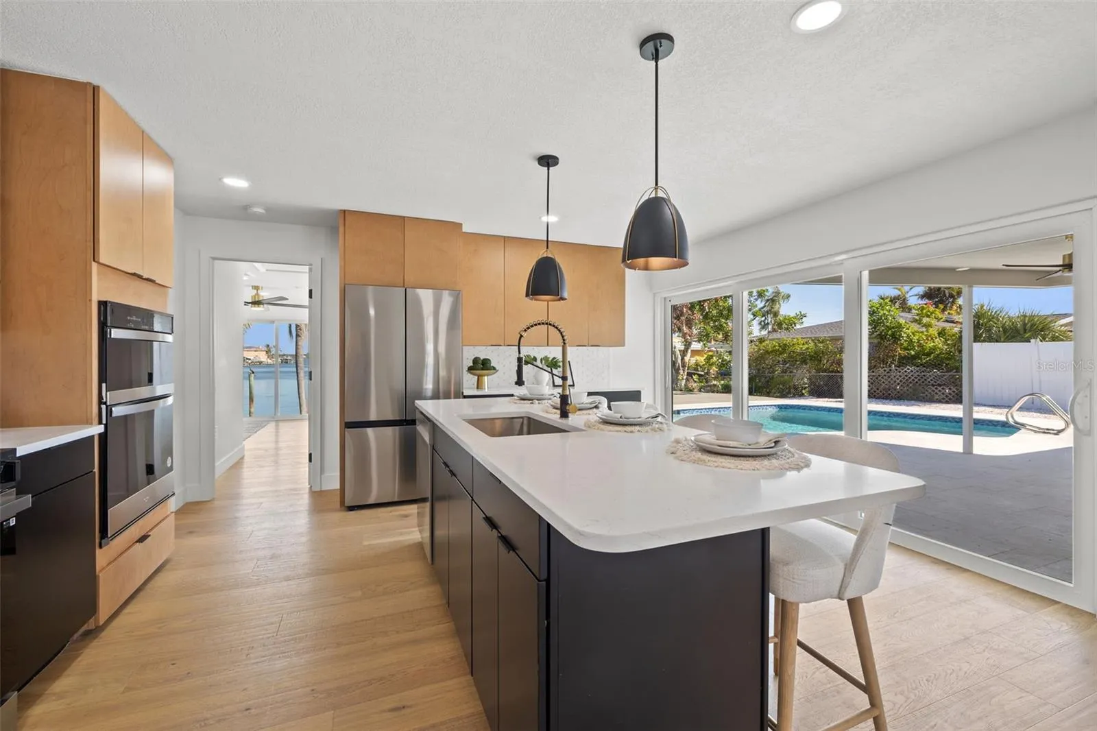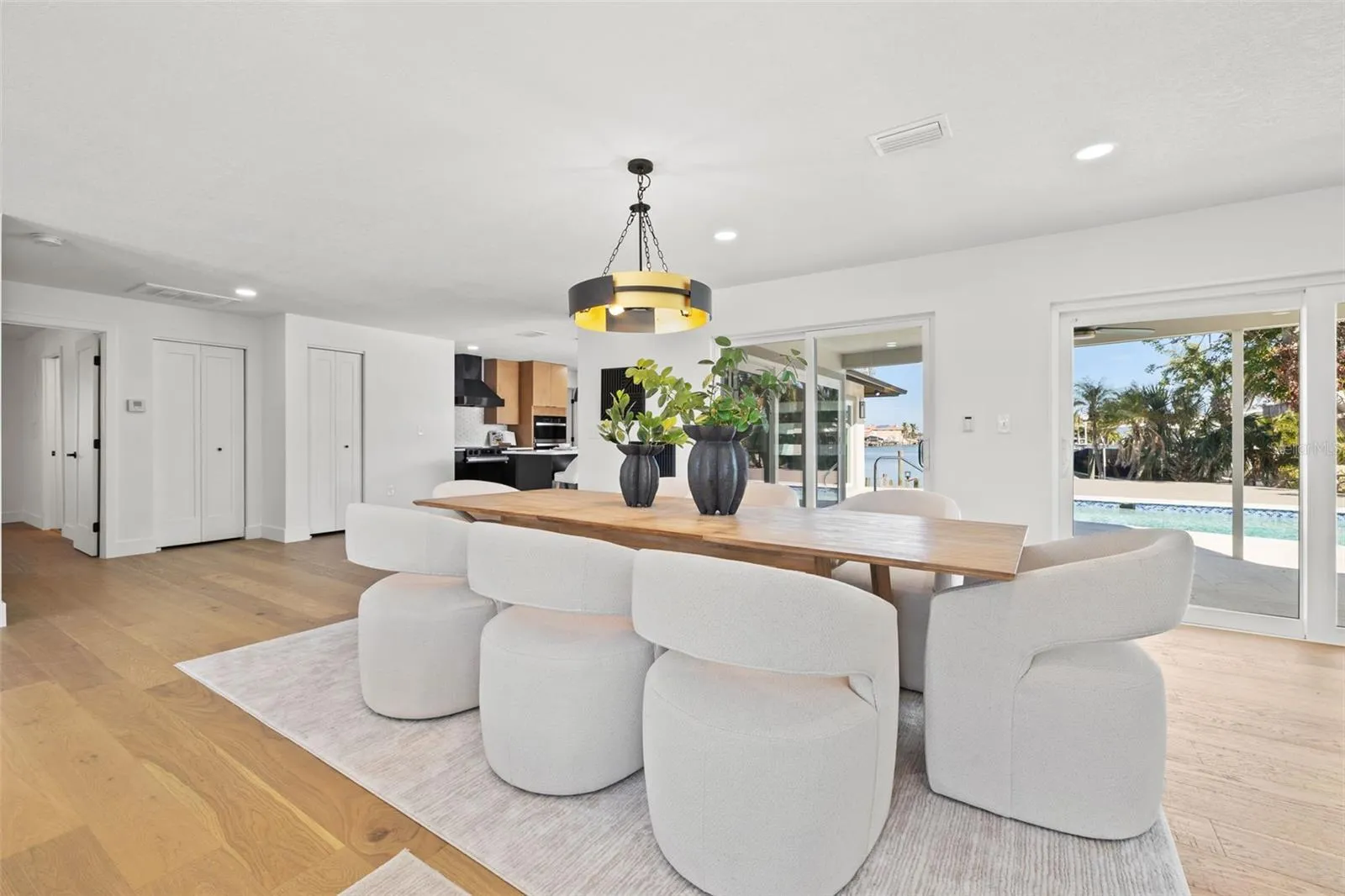 Outside, enjoy a sparkling pool surrounded by a stylish outdoor living area, perfect for relaxing or entertaining. The private dock offers easy access to open water, making this home ideal for those seeking a waterfront lifestyle.