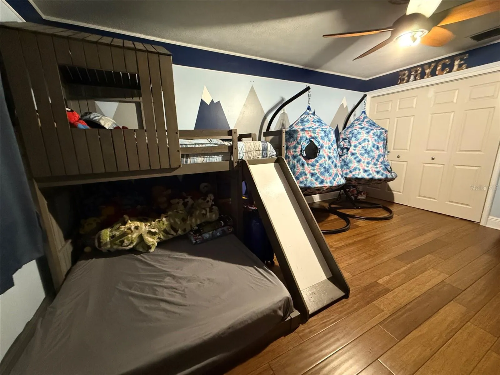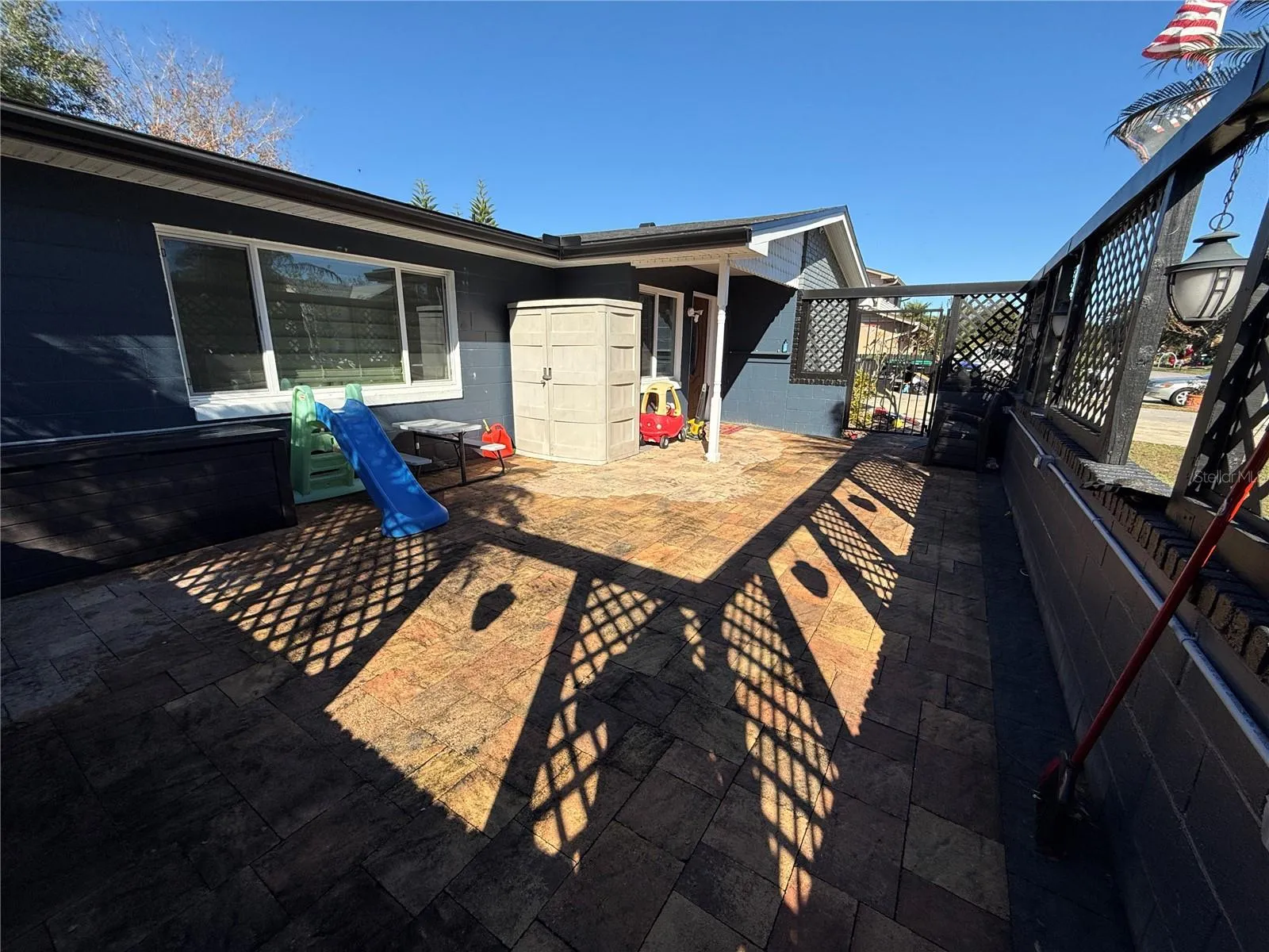 This beautifully updated home offers the perfect blend of modern upgrades and family-friendly features. The kitchen is a true centerpiece, featuring brand-new cabinets, sleek granite countertops, and an infrared stove, all complemented by a Samsung smart fridge and other kitchen appliances, all within three years of purchase. The adjacent dining room offers additional granite surfaces, built-in shelving, and cabinetry—perfect for storage and entertaining. Bamboo wood and tile flooring flow throughout, enhanced by upgraded light fixtures for a stylish, contemporary feel. Adding to the home’s charm, Govee lighting surrounds the perimeter, while lantern lighting brightens the front porch, creating a warm and inviting atmosphere. Recent updates include a new roof (2023) and a high-efficiency AC unit (2021), ensuring comfort and peace of mind. Enjoy extra living space with a large front porch that offers partial privacy—ideal for relaxing or hosting guests. The spacious backyard is a true highlight, featuring a swing set, 8-foot trampoline, and a convenient storage shed. The yard is thoughtfully divided by a picket fence, separating the play area from the rest of the yard, which is fully enclosed by a privacy fence. A screened-in back porch provides a peaceful retreat, while knockdown ceilings throughout add a modern touch. Additional features include a two-car garage, offering plenty of storage and convenience. Located in a sought-after neighborhood, this home is ideal for evening walks with the family and connecting with welcoming neighbors. Move-in ready and waiting for you to make it your own!