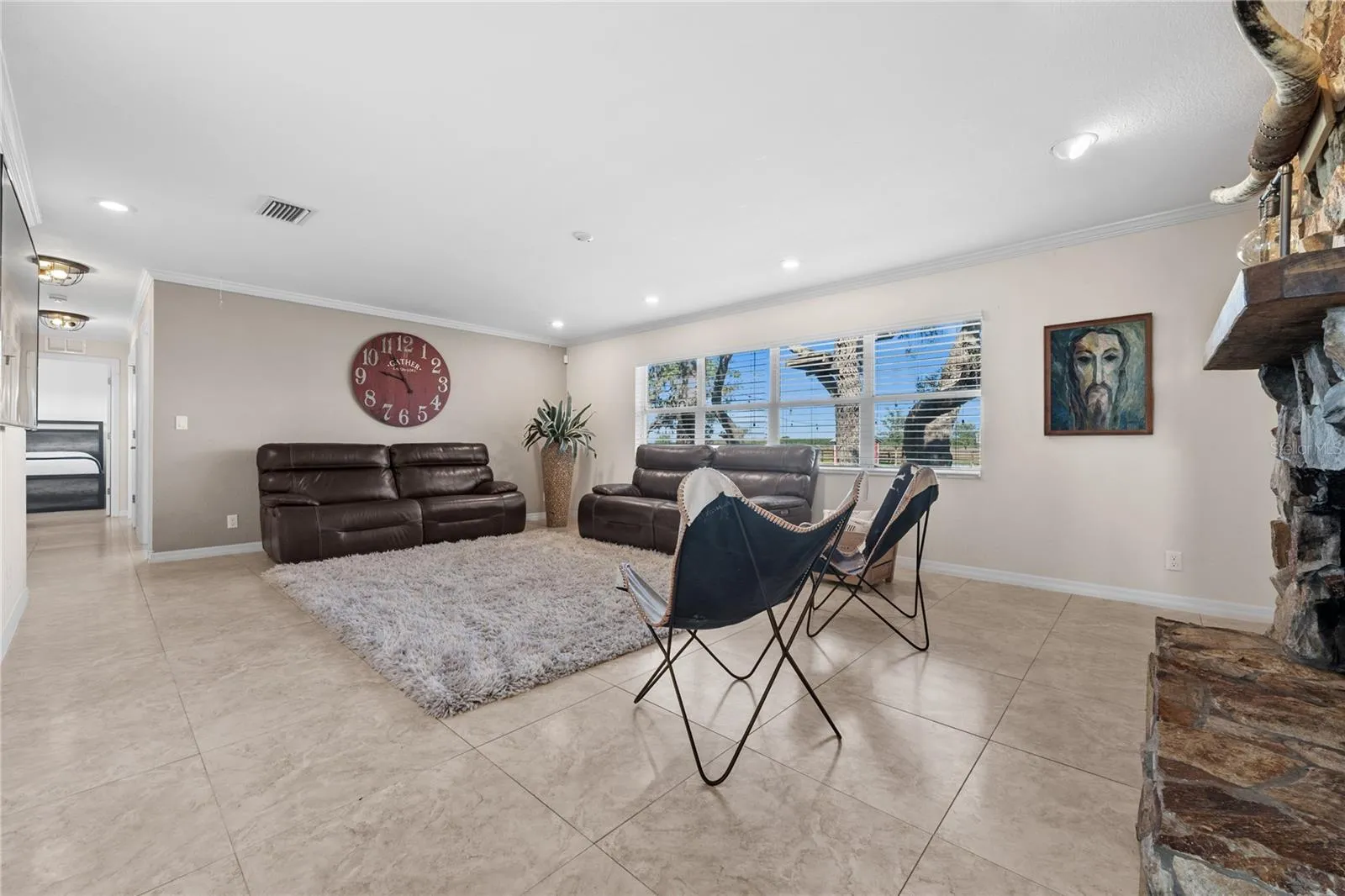 PERFECT FOR FARM AIRBNB !!! Located on 41.34 acres of prime Florida ranchland, this 2,200 sq. ft. home features 4 bedrooms and 3 bathrooms, with modern updates throughout. The kitchen boasts stainless steel appliances, a gas stove, and new countertops. Enjoy tile floors, a cozy stone fireplace, and a metal roof. Outside, relax by the fire pit, shoot hoops on the basketball court, or unwind under the oak trees on the screened porch. Fully equipped for animals with a chicken coop, pumphouse, Cowpens, and a 70′ x 40′ barn with plumbing, stalls, and a tack room. Motivated seller, seller financing available—every item that you see is for sale, but not included on the property asking price (please ask for price). Come see it today!
