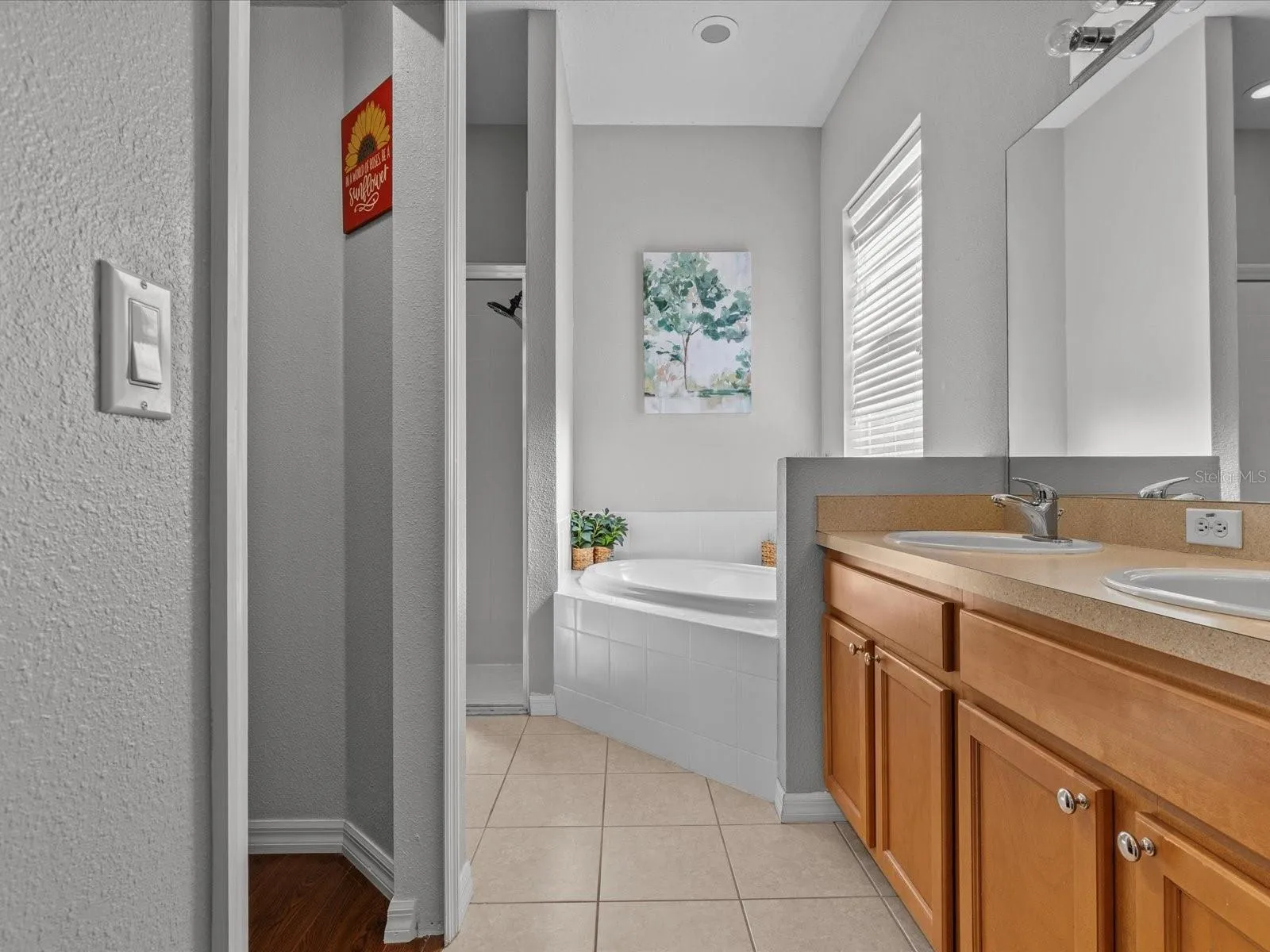 The primary suite is a true retreat, featuring a walk-in closet, dual sinks, a luxurious soaking tub, and a separate stand-up shower. Additional highlights include upgraded landscaping, a 2-car garage, and plenty of natural light throughout.