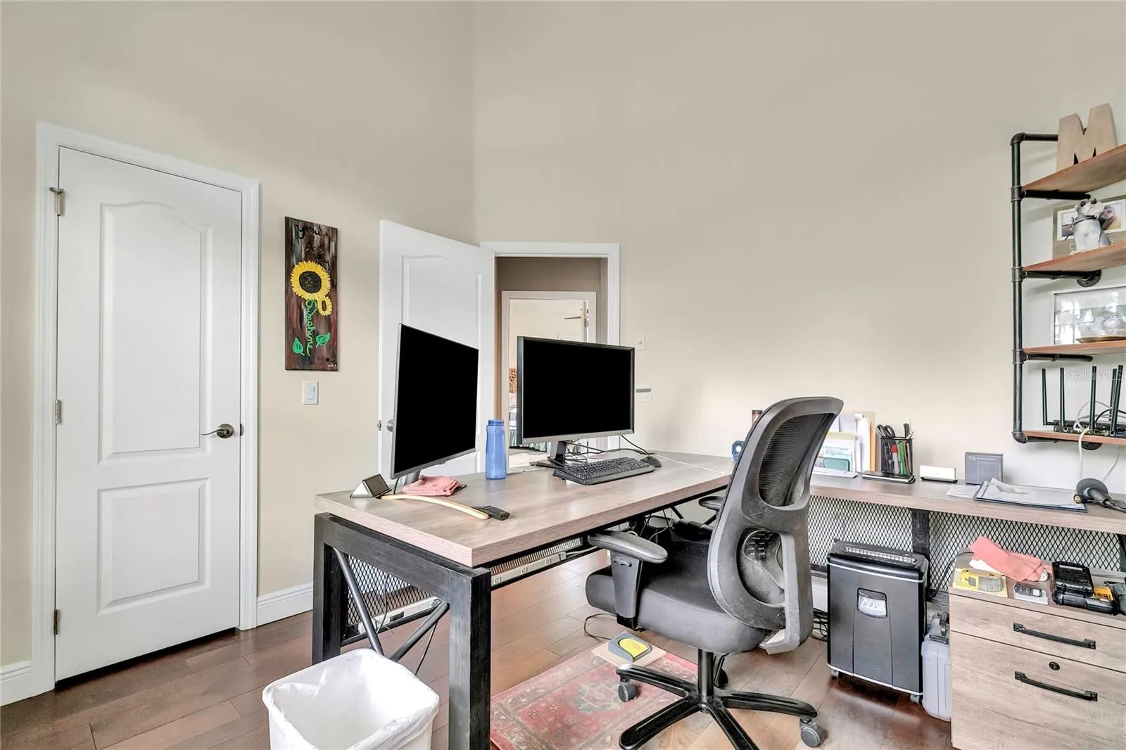 Indulge in the owner’s suite, a haven for tranquility, featuring two spacious walk-in closets with custom shelving and an en-suite luxurious bathroom complete with dual vanities, a walk-in shower, and a garden tub for ultimate relaxation.