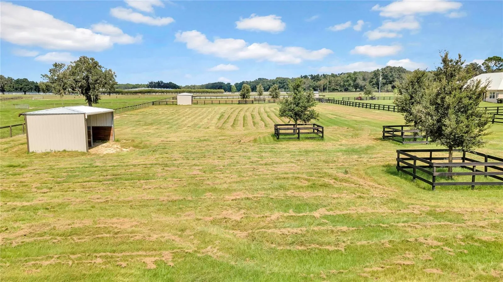For equestrian enthusiasts, the property boasts a new, 100 x 200 all-weather arena with perimeter rails and a built-in watering system, making it perfect for training and riding year-round. Three fully fenced pastures with high-quality three-rail no-climb fencing. There are also two open barns totaling four stalls, each with corner feeders. Additional outbuildings include a feed and tack barn with a wash rack to accommodate all your equestrian needs. Beautiful Spanish Moss-draped oaks surround the property, adding charm and tranquility to the landscape. This property also presents many opportunities for horse enthusiasts, with the potential to create the barn of your dreams and set up paddocks. Additionally, you will have recorded access to the extensive Florida Greenway trail system, providing convenient riding access to the nearby Florida Horse Park! This Central Florida estate offers an unparalleled opportunity to experience luxury living, privacy, and equestrian excellence. Do not miss the chance to make this exceptional property your own!