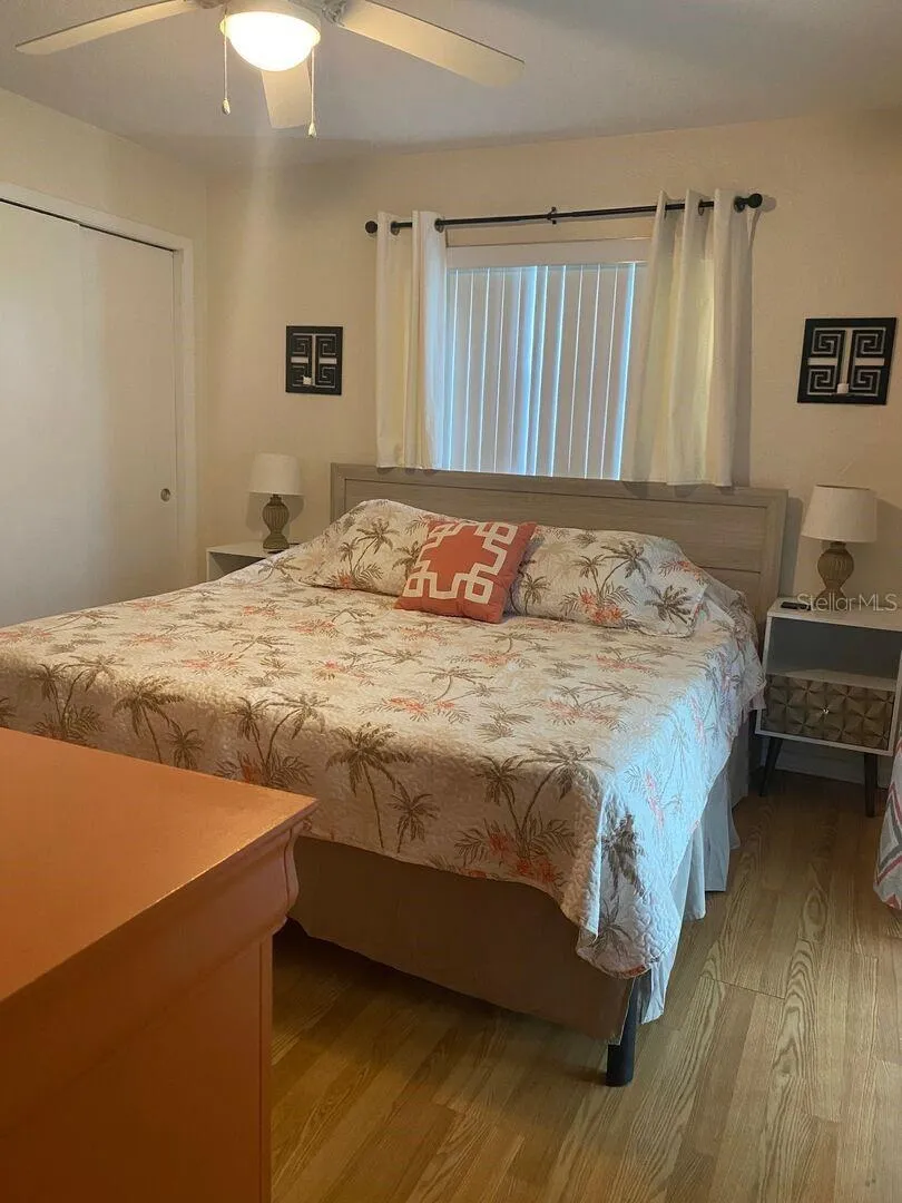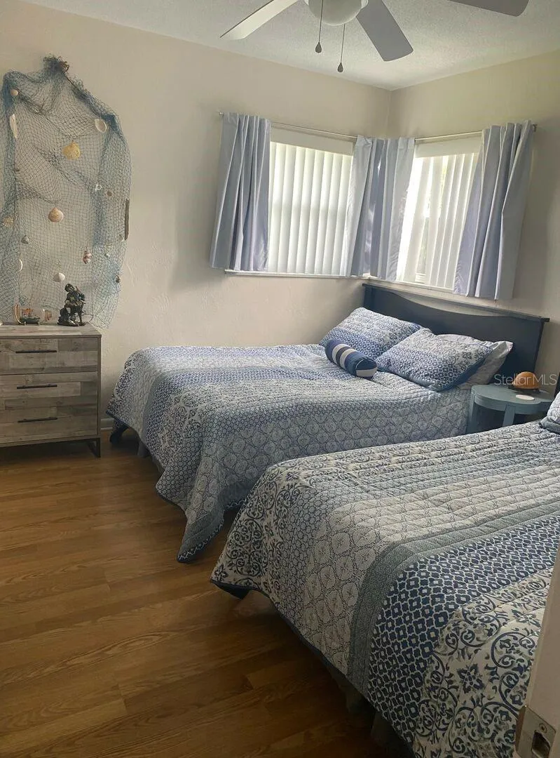 This is the perfect little getaway home for you and your family! This spacious two-bedroom, two-bath home is close to the beach and just a short drive to Flagler Avenue, with dining, shopping, and entertainment. There is plenty of space to kick back, relax, and enjoy your vacation in this adorable home. The kitchen is fully equipped with everything you need to prepare all your family meals at home. The dining table will comfortably seat six, or you could enjoy your meals from the propane grill at the back porch dining table. There is a big private backyard with a tree swing for you or the little ones to swing the evenings away. The main bedroom has a king-size bed, an en suite bathroom,m and a private entrance to the screened porch. The second bedroom has two full-size beds. Book your NSB vacation now!!