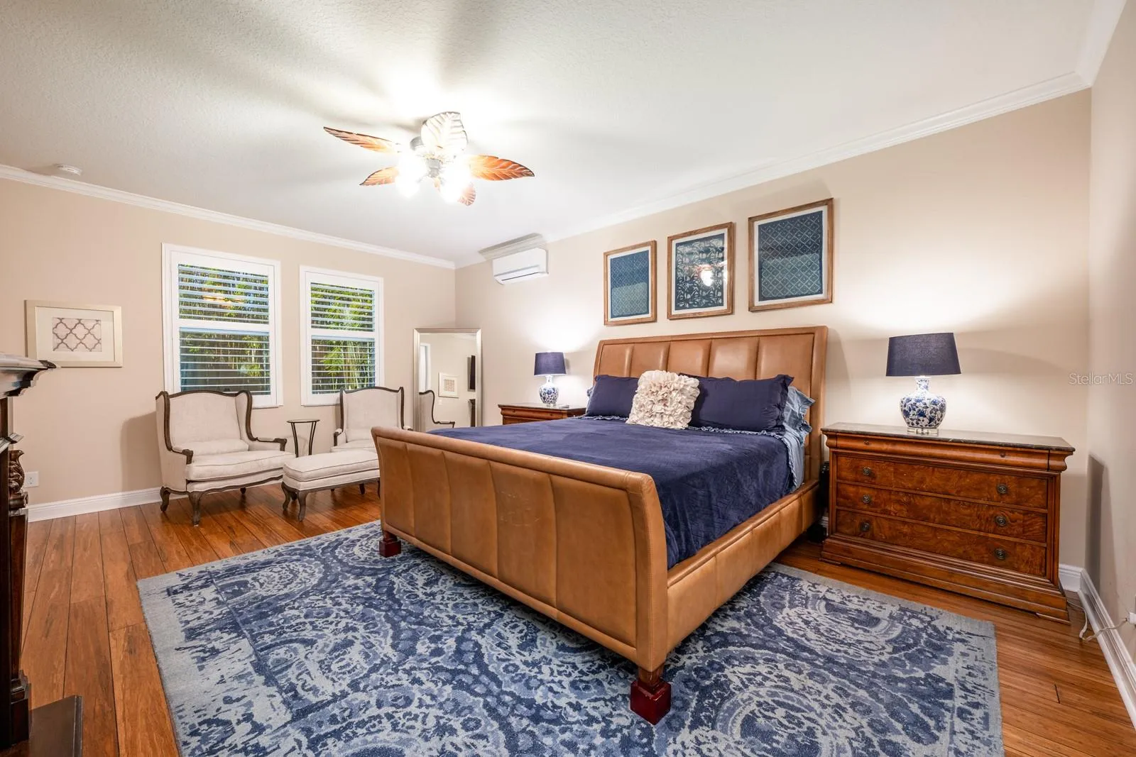 Energy efficiency takes center stage with paid-off Tesla solar power with full battery backup and a Tesla car charger. The garage itself is air-conditioned and features insulated doors, making it a comfortable space year-round. Inside, you’ll find plantation shutters, elegant crown molding, and ceiling fans throughout.
