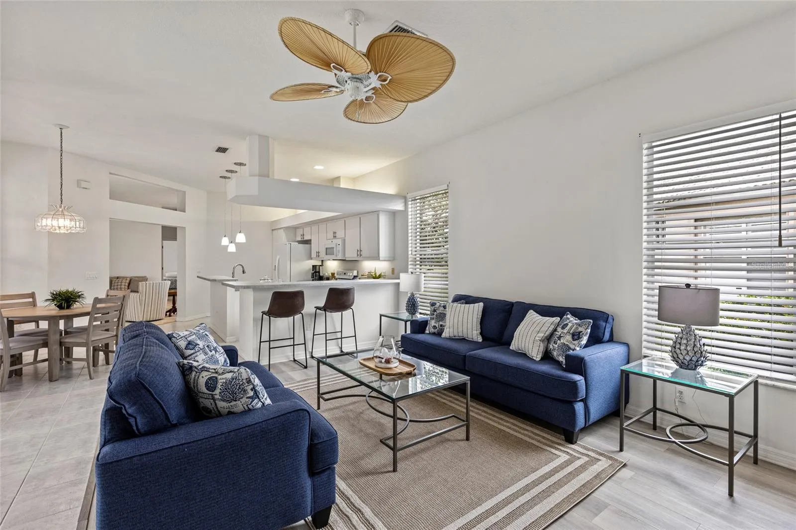 OPEN AND AIRY SPACES WITH SOME PRIVACY -this home has a living room and family room, eat in kitchen with lots of bar height counter top for extra seating – overlooking the family room and pool area. The living room and dining area offer beautiful lake views.