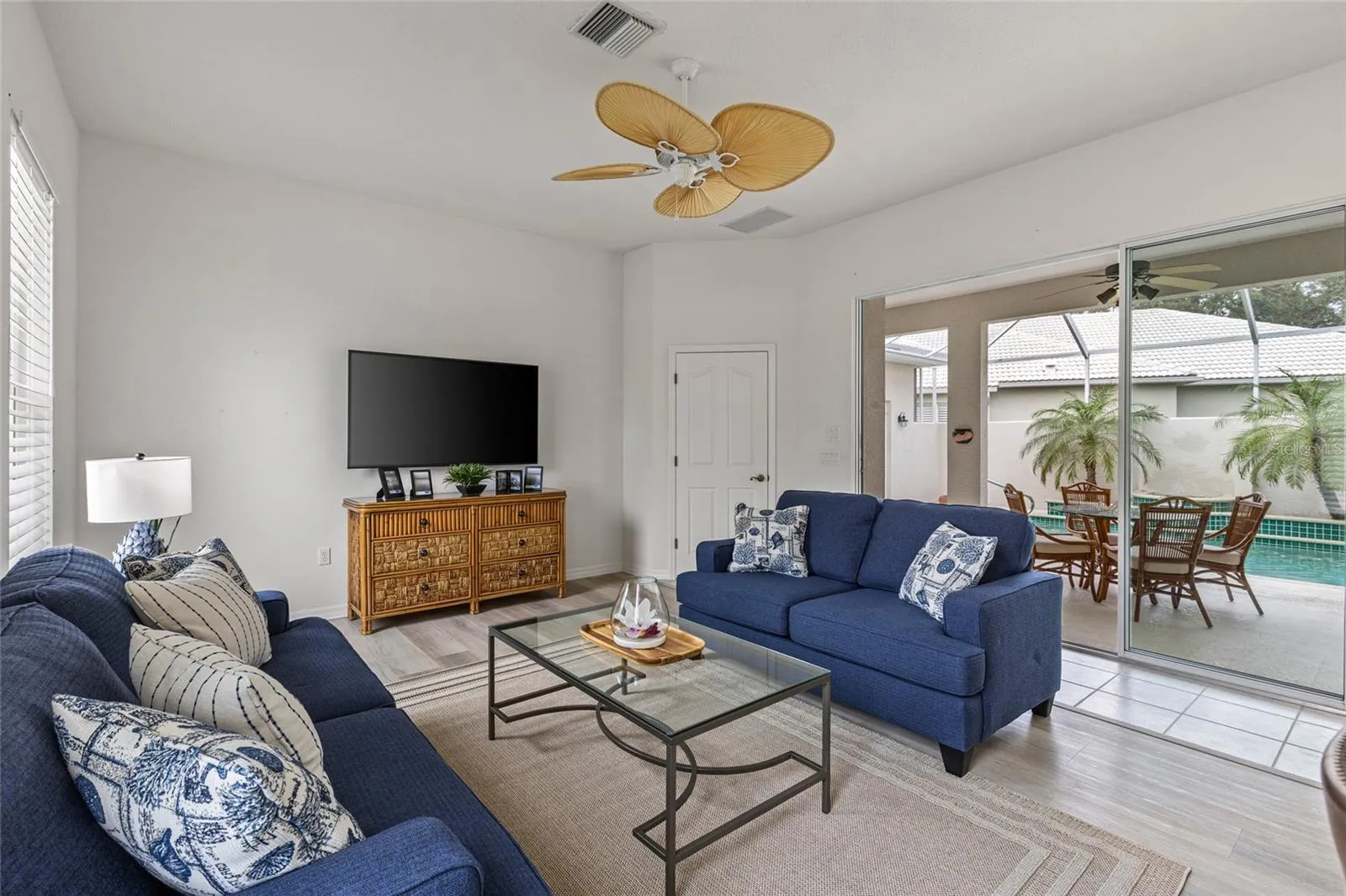 THROW OPEN ALL THE FRENCH DOORS /SLIDERS to let the POOL/PATIO area live together in harmony with the interior spaces – to feel the outside breezes and fresh air that make your home live like it’s on vacation.