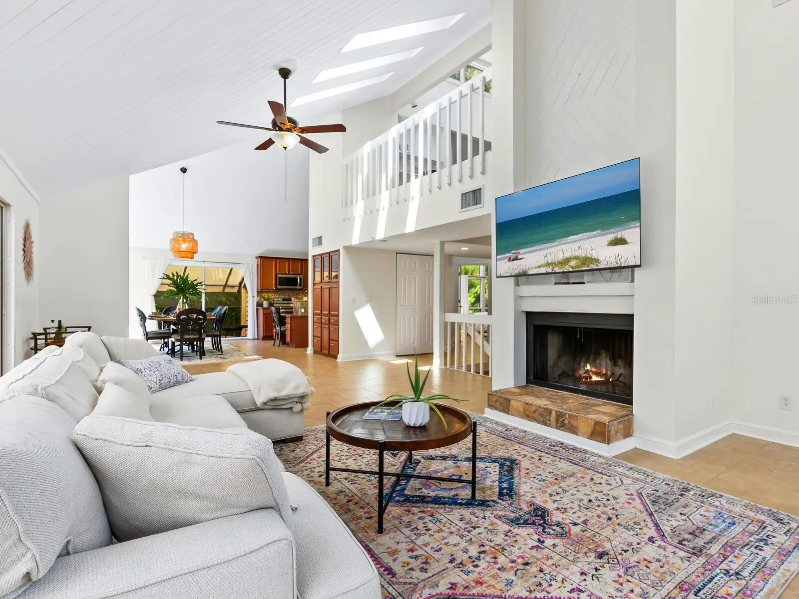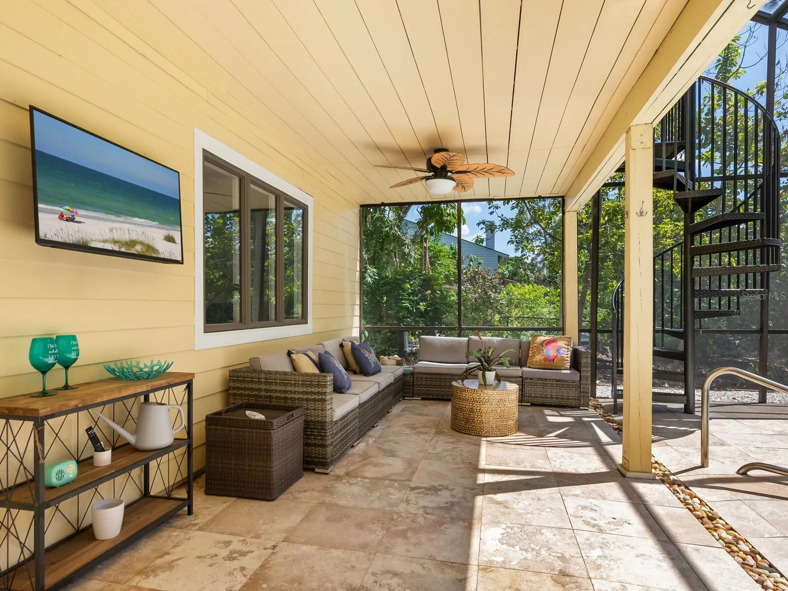 Welcome to this expansive coastal residence located in South Siesta Key Village, offering seamless access to both the Gulf and Sarasota Bay. Encompassing 3,681 square feet of interior space and 6,751 total square feet, this three-bedroom, three-bath home is designed for elevated waterfront living. The primary bedroom features a spa-style bath with double sinks, a large soaking tub, an expansive walk-in shower, and built-in closet systems. The kitchen includes a dedicated bar area, pantry, and direct access to the elevator. The light-filled living room offers vaulted ceilings, a wood-burning fireplace, and access to multiple balconies, providing amazing sunset and sunrise views. Additional interior highlights include two air-conditioned storage rooms, two oversized garages, and a light filled loft with many uses. A full bedroom and living room suite on the ground level opens directly to the heated, south-facing pool. A covered and screened patio with a six-person jacuzzi enhances the outdoor living experience. Boaters will appreciate the 10,000-pound boat lift, jet ski float, and direct, bridge-free access to Sarasota Bay within minutes from your dock. The home is a short stroll to Point of Rocks beach access and within close strolling proximity to the dining and entertainment options of South Siesta Key Village. The tropical landscape has been completely updated and this home is move in ready and a perfect escape from the northern winters.