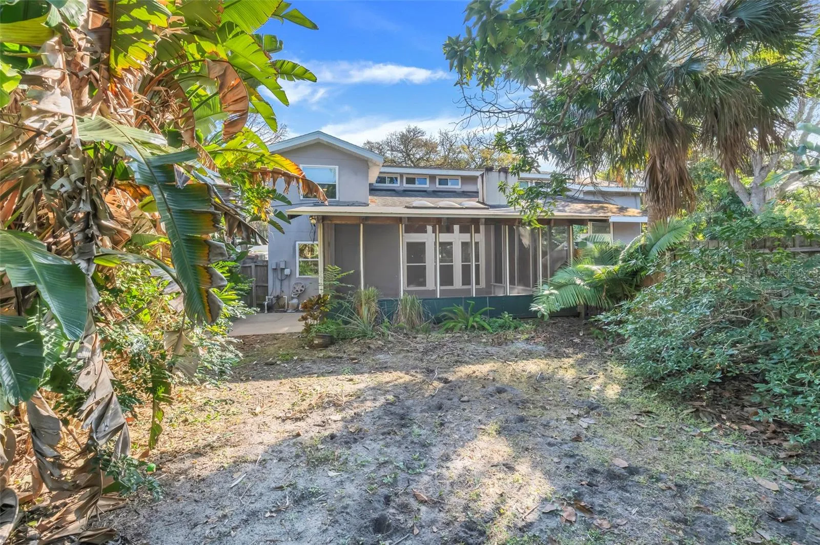 Step outside to a vaulted, screened-in lanai with a skylight, leading to an extended patio and fully fenced backyard with a prolific avocado tree and banana trees. Upstairs, sealed French doors on the landing provide a view of the cathedral ceilings and backyard. The expansive primary suite includes a walk-in closet and an en-suite bath with dual sinks and a tub/shower combo. The second bedroom is exceptionally spacious, offering versatility as an office, playroom, or gym. The third bedroom is well-sized, with a full guest bathroom between them.