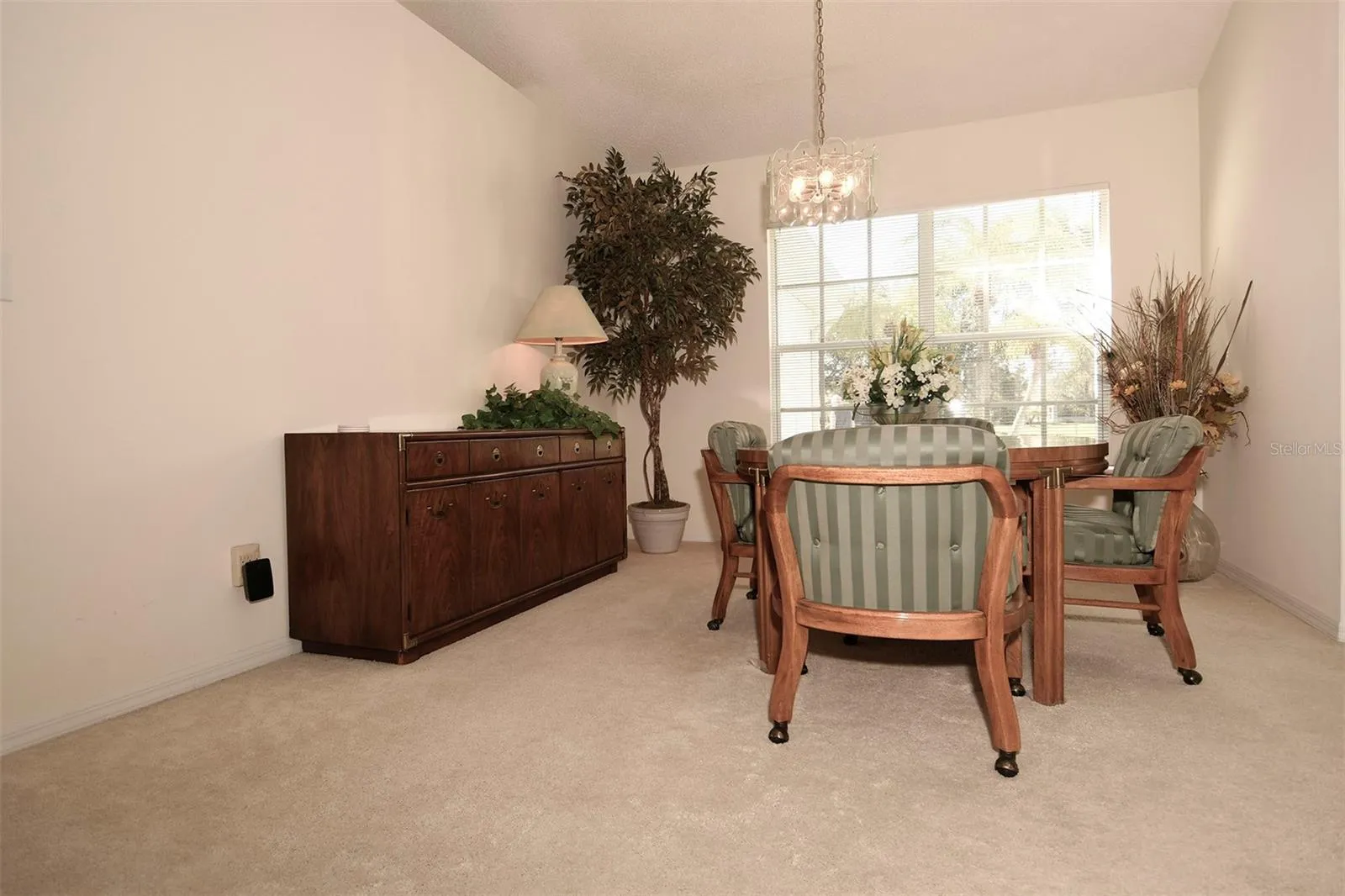 The kitchen, equipped with white appliances, is conveniently located, just steps away from the breakfast nook, dining room, and Florida room. This setup ensures seamless transitions for both casual meals and entertaining guests.