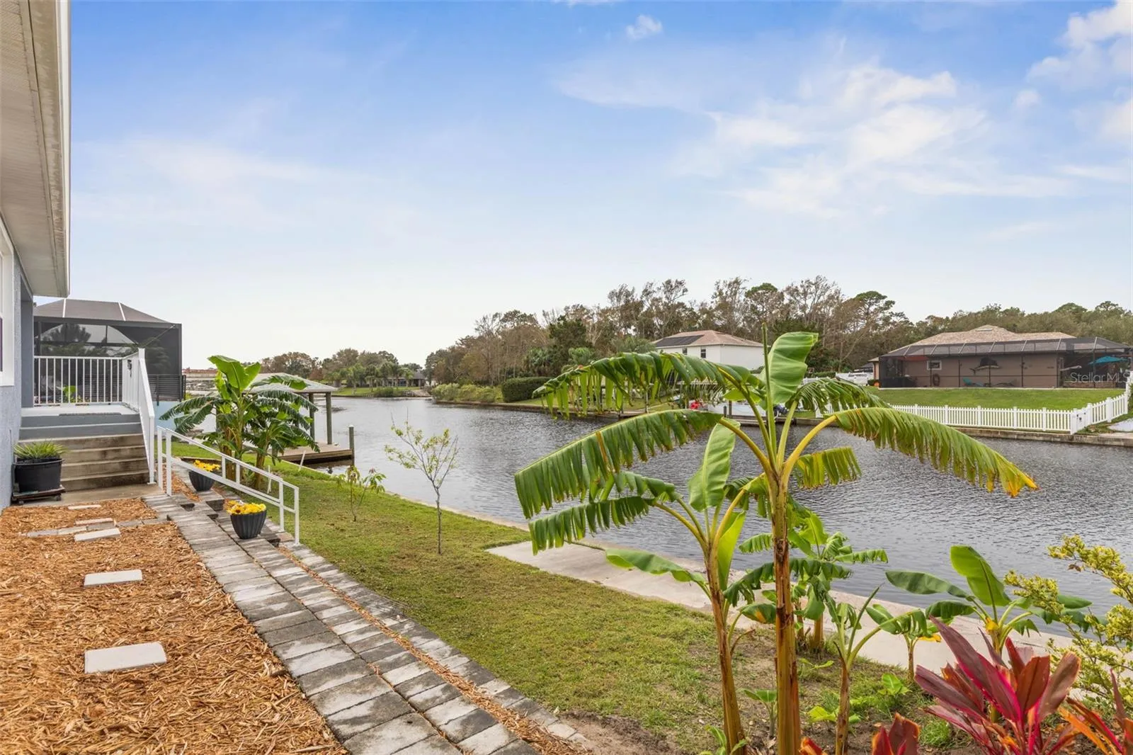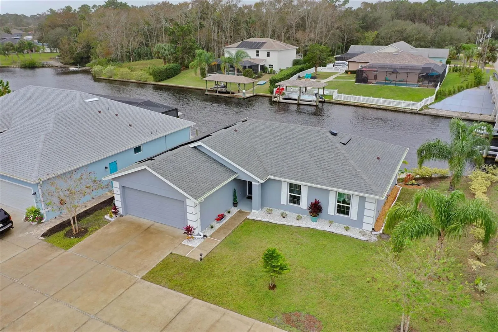 Nestled along a saltwater canal, this stunning home offers breathtaking views and a serene waterfront lifestyle. With energy-efficient owned solar panels, your electric bill is only $25 a month, providing sustainable and cost-effective living. This home features a modern kitchen with elegant granite countertops throughout and upgraded, deep drawers to maximize storage and convenience. The spacious primary bedroom includes a walk-in shower with an added safety bar for your peace of mind. For those with a green thumb, the backyard includes four rows of raised planters along the back of the home, perfect for planting your favorite flowers, herbs, or vegetables. Imagine spending your mornings fishing right from your balcony or enjoying peaceful evenings with the calming sounds of the water watching the holiday parades and or the dolphins playing. This exceptional property is steps away from Long Creek Nature Preserve, where you can indulge in fishing, kayaking, picnicking, and biking and walking paths. Experience the perfect blend of natural beauty, outdoor recreation, and modern convenience in this water-front home.