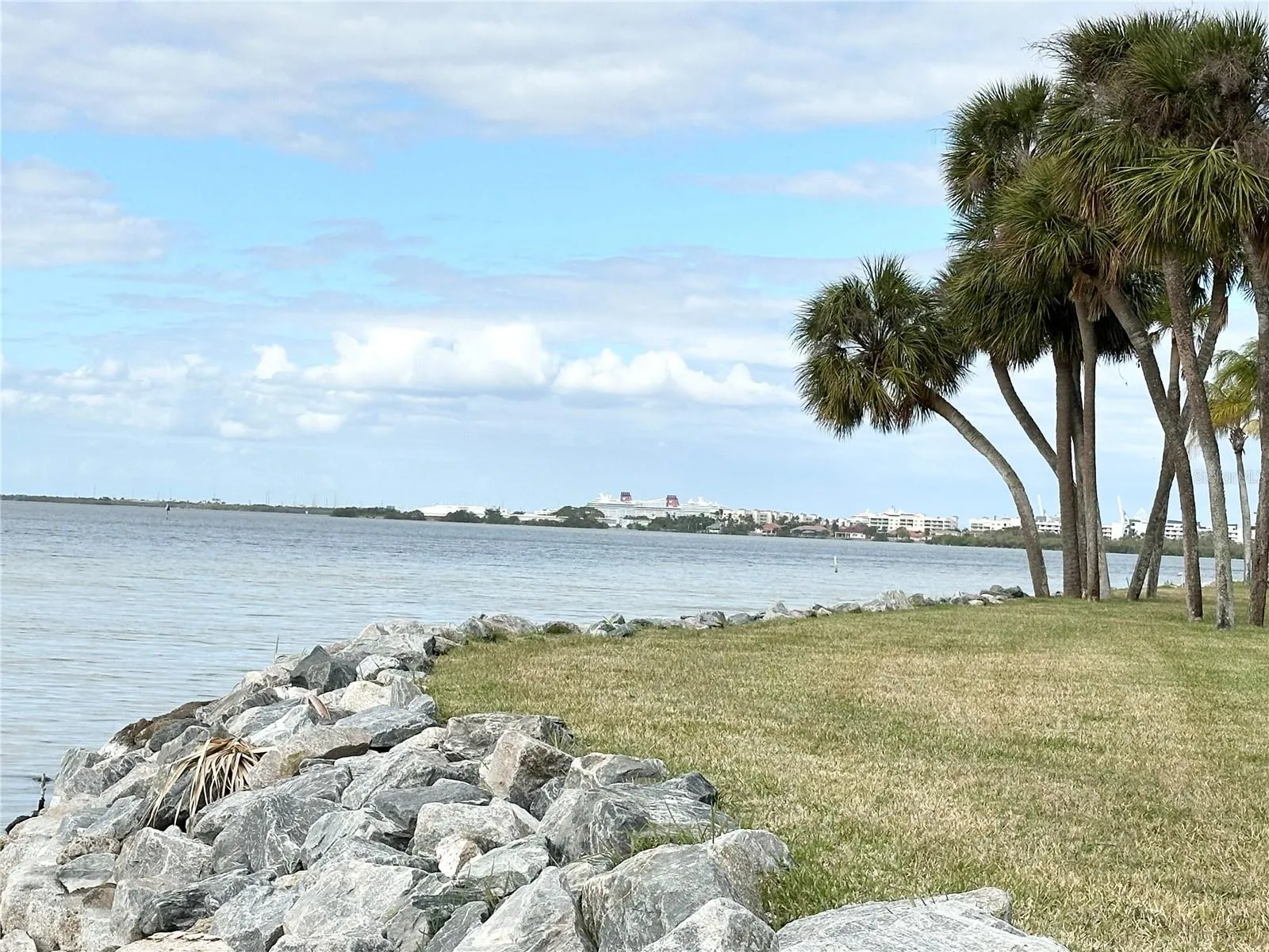 RARE waterfront, first floor end unit in Cape Shores. This one checks all the boxes. Beautiful direct river views of the Banana River from this ground floor, 2 bedroom, 2 bath, corner unit. As you enter the unit, you are greeted by the bright and airy living room/dining room combo with beautiful water views. Newer vinyl plank flooring, ceiling fans and blinds throughout. Enjoy Beautiful Sunsets from your lanai and from the primary suite. It is just a short walk over to the dock with gorgeous views of Port Canaveral and the cruise ships. Parking is conveniently located right in front of the unit and the separate storage locker and laundry is just a few steps from the front door. The Cape Shores Community offers many amenities including a clubhouse with a kitchen for social events, a heated pool, men’s and women’s private saunas, an exercise room, a billiards room, dock, boat ramp and boat slips. A putting green and shuffleboard are also available on property. This is a great location just 3 blocks to the beach, restaurants, and shopping, and just minutes from the Port Canaveral cruise terminals. Conveniently located just 45 minutes from Orlando International Airport and Melbourne Orlando International Airport. Come check out this amenity-filled community and this fabulous waterfront condo. Seller has paid the full $21,000 assessment for the current patio remodel in progress.