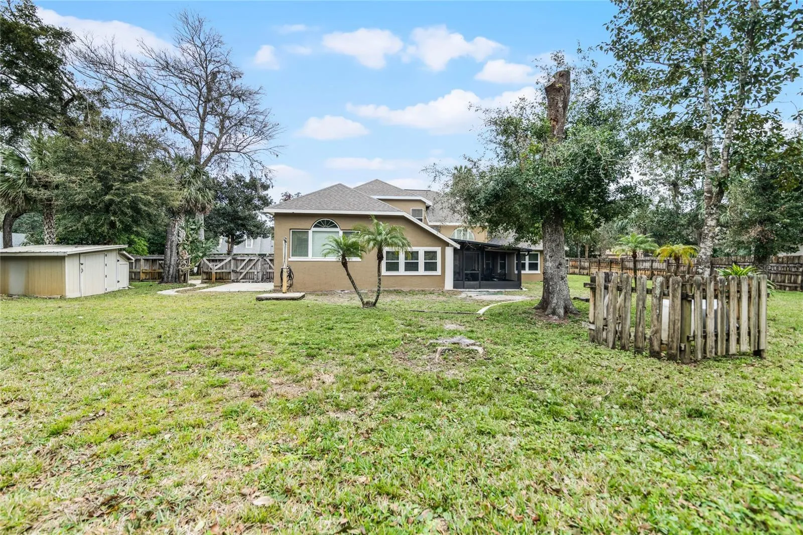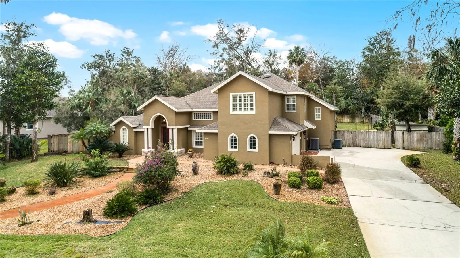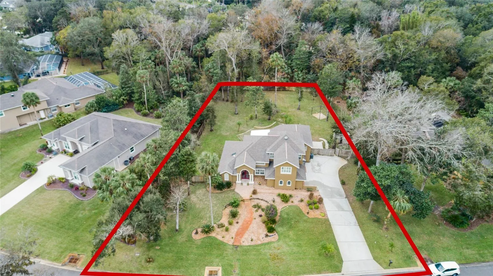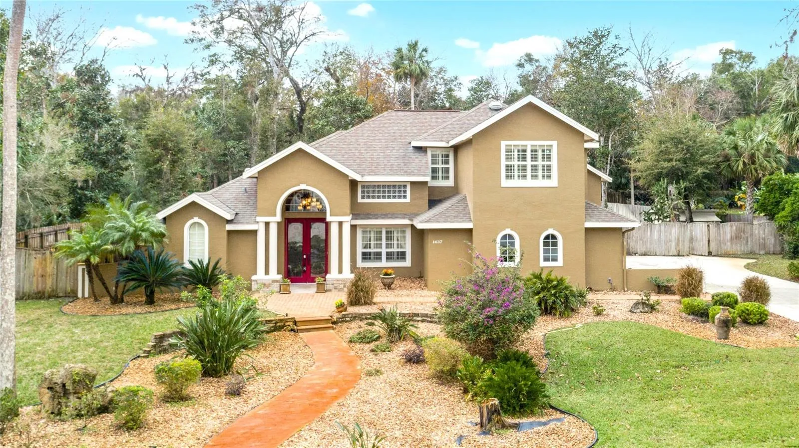 This stunning, unique and updated 4-bedroom, 2.5-bath custom home offers a perfect blend of luxury, privacy, and craftsmanship. Situated just 15 min from the beach, this home has over half an acre with mature landscaping, a spacious yard, and so many possibilities for creating your dream outdoor oasis. Enter through the custom 8-foot double door main entry and be welcomed by an open-concept floorplan with soaring 14-foot volume ceilings and luxury finishes such as copper tile accents, crown molding, and rich wood-grain tile flooring. The architectural details, including elegant niches, evoke timeless sophistication. The first-floor owner’s retreat is a true sanctuary, featuring a double tray ceiling, a spacious walk-in closet, and a spa-like ensuite, with unique tile work, a wood-grain double vanity, granite counters, a soaking tub, a walk-in shower, and a private water closet. The chef’s kitchen is a masterpiece with a large central island offering ample prep space and seating. Custom white wood cabinetry, granite countertops, SS appliances and a pantry with a decorative glass door elevate the space. The open layout seamlessly connects the kitchen to the living area, enhanced by wood tongue-and-groove ceilings, providing a perfect setting for entertaining or everyday living. The second floor offers three spacious guest bedrooms, a loft area, and a full bath, creating a private haven ideal for kids, guests, or multigenerational living. The home extends its entertainment possibilities with a large, screened patio, perfect for enjoying serene backyard views. And best of all, it has easy access to shopping, I-95, and the beach! It’s also located 5 min from one of the most picturesque and enjoyable golf courses on the East Coast of Central Florida – the Halifax Plantation Golf Club – which has an 18-hole course, a southern-style clubhouse, a restaurant and pub as well as exercise facilities and tennis courts. This home is truly a one-of-a kind opportunity with something for everyone!