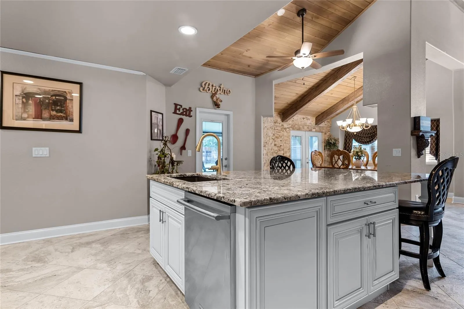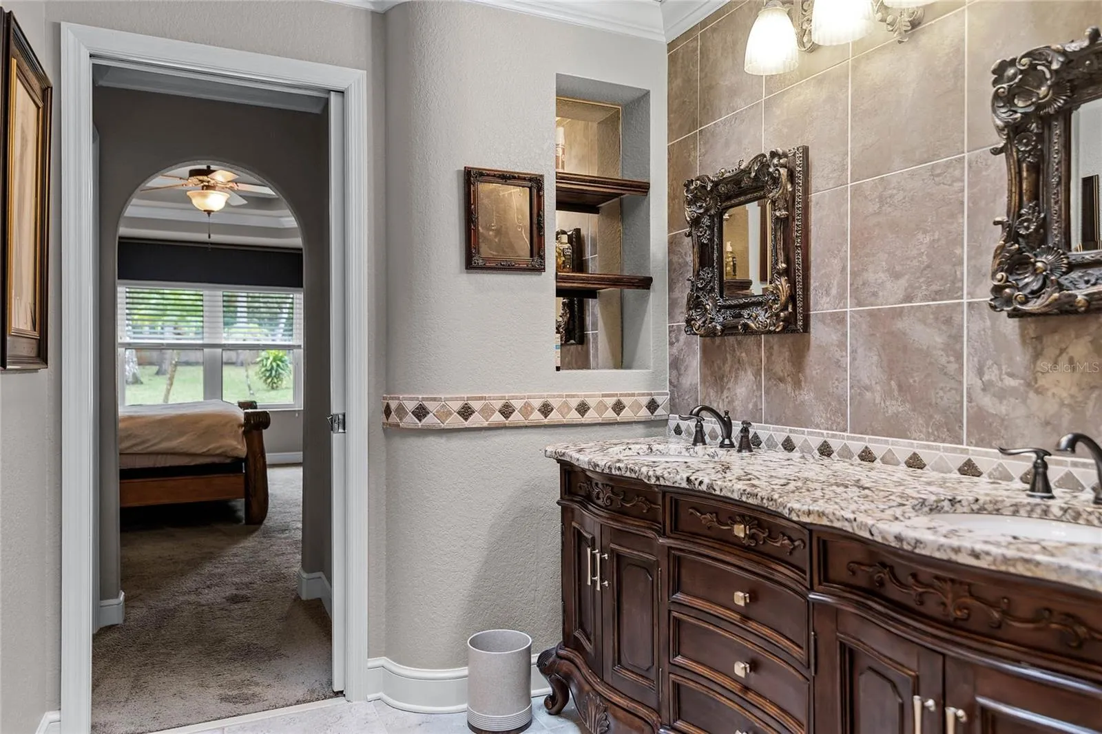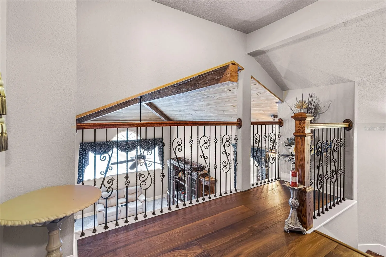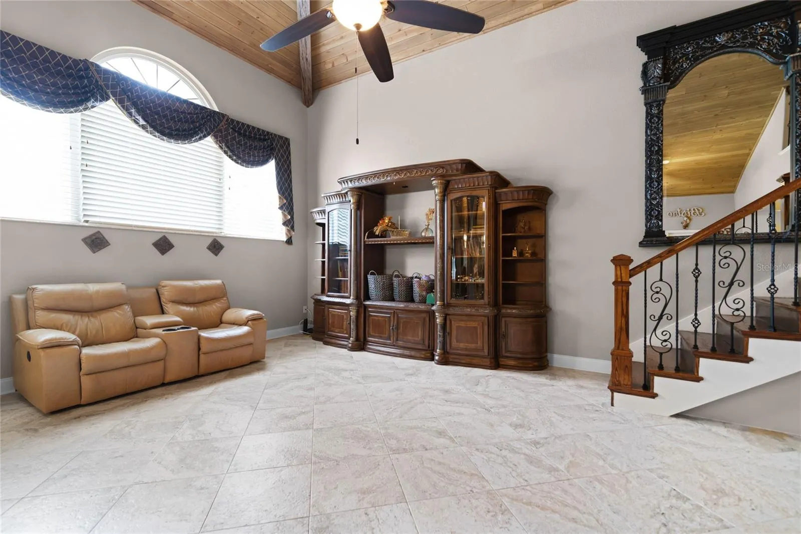 This stunning, unique and updated 4-bedroom, 2.5-bath custom home offers a perfect blend of luxury, privacy, and craftsmanship. Situated just 15 min from the beach, this home has over half an acre with mature landscaping, a spacious yard, and so many possibilities for creating your dream outdoor oasis. Enter through the custom 8-foot double door main entry and be welcomed by an open-concept floorplan with soaring 14-foot volume ceilings and luxury finishes such as copper tile accents, crown molding, and rich wood-grain tile flooring. The architectural details, including elegant niches, evoke timeless sophistication. The first-floor owner’s retreat is a true sanctuary, featuring a double tray ceiling, a spacious walk-in closet, and a spa-like ensuite, with unique tile work, a wood-grain double vanity, granite counters, a soaking tub, a walk-in shower, and a private water closet. The chef’s kitchen is a masterpiece with a large central island offering ample prep space and seating. Custom white wood cabinetry, granite countertops, SS appliances and a pantry with a decorative glass door elevate the space. The open layout seamlessly connects the kitchen to the living area, enhanced by wood tongue-and-groove ceilings, providing a perfect setting for entertaining or everyday living. The second floor offers three spacious guest bedrooms, a loft area, and a full bath, creating a private haven ideal for kids, guests, or multigenerational living. The home extends its entertainment possibilities with a large, screened patio, perfect for enjoying serene backyard views. And best of all, it has easy access to shopping, I-95, and the beach! It’s also located 5 min from one of the most picturesque and enjoyable golf courses on the East Coast of Central Florida – the Halifax Plantation Golf Club – which has an 18-hole course, a southern-style clubhouse, a restaurant and pub as well as exercise facilities and tennis courts. This home is truly a one-of-a kind opportunity with something for everyone!