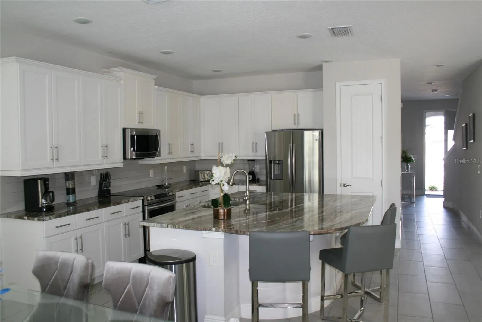 Beautiful Reunion/Encore Pool Home in a gated Water Park community just a few miles from Disney World. This is an amazing 5 bedroom and 5 and a half bathroom open plan house with a large Pool/spa with heating & extended deck area with Lanai. 2 convenient bedrooms downstarirs with ensuite bathrooms, kitchen with stainless steel appliances. Sliding doors overlooking the pool area with child pool safety alarms. Loft area upstairs. Community with amazing water park, clubhouse, 24-hr Concierge service, swimming pool with Cabanas, Gym, Tennis Courts, Restaurants, and more !!!
