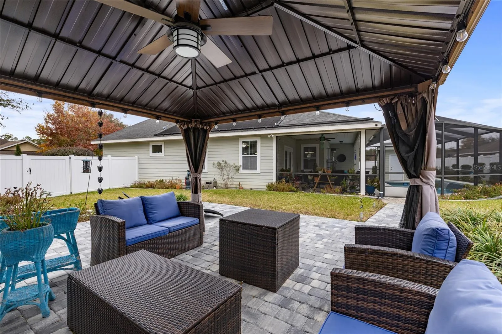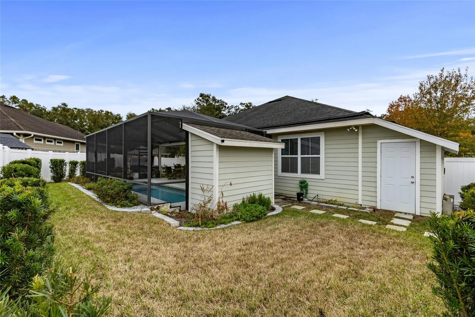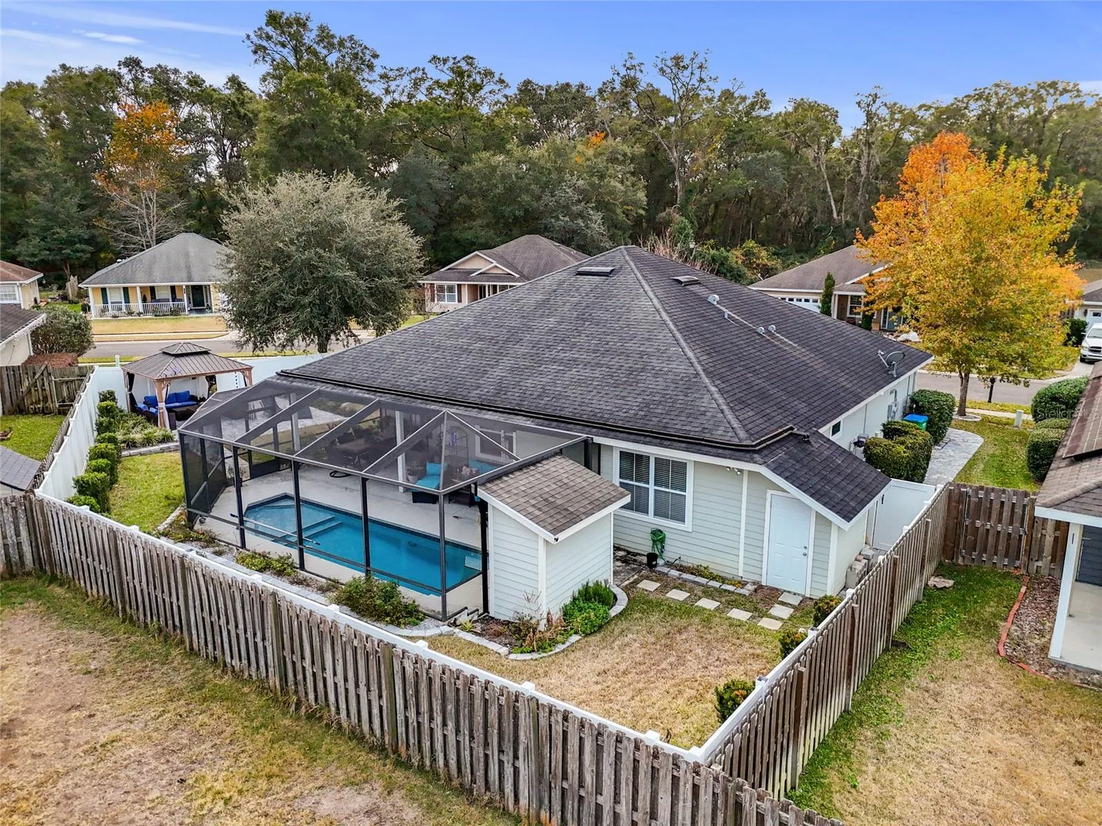 Seller offering is $5,000 credit to buyers!!! Welcome home to this beautiful 3 bedroom, 2 bathroom POOL home! This private and spacious corner lot is nestled in the back of the Oak Ridge neighborhood conveniently located between High Springs and Alachua. When you arrive you’ll appreciate the mature landscaping and welcoming front porch. Step inside to 9’ ceilings, hard flooring throughout, and a spacious yet cozy split floor plan. The two guest bedrooms are located immediately to the left and right of the foyer with the full guest bathroom and a linen closet as well. The foyer opens to a large open concept living area with a view of the back patio and pool. The kitchen boasts stainless steel appliances, an abundance of cabinets and storage space, an island with bar height seating, and granite countertops. The living room and dining room provide the perfect amount of space for hosting all your family and friends. The primary suite is located at the back of the home with a well appointed primary bathroom including a deep soaking tub and a free standing shower. The real show stopper awaits you outside! French doors from the living room lead to an expansive outdoor oasis: a large covered patio, the perfect size pool featuring a water fall and two water fountains, and a storage shed are all within the screened in enclosure. A beautiful paver patio extension with gazebo was added to create an extra outdoor sitting area beyond the screened patio as well! Additional features include: pool pump closet/shed with new pool pump, low maintenance vinyl fencing, blink video camera system, updated LVP in bedrooms, and so much more. Home also has a full house Generac generator. Call today to schedule your showing! *Buyer to verify all property details.*