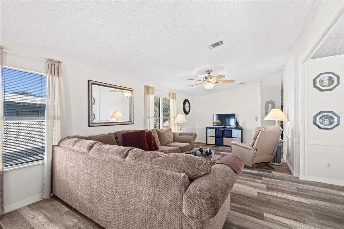 Discover the perfect blend of comfort and convenience in this beautifully updated 2-bedroom, 2-bath mobile home located in the highly desirable 55+ community of Casa Del Sol in Zephyrhills. Designed for both style and function, this home features features a bright, open floor plan with elegant luxury vinyl plank flooring throughout, creating a seamless and modern aesthetic. The updated kitchen boasts sleek appliances, ample cabinetry, and a stylish backsplash, while the spacious living area is ideal for relaxing or entertaining guests. The master suite offers a peaceful retreat with its own en-suite bathroom, and the second bedroom is perfect for guests or a home office, with a nearby updated full bathroom for added convenience.