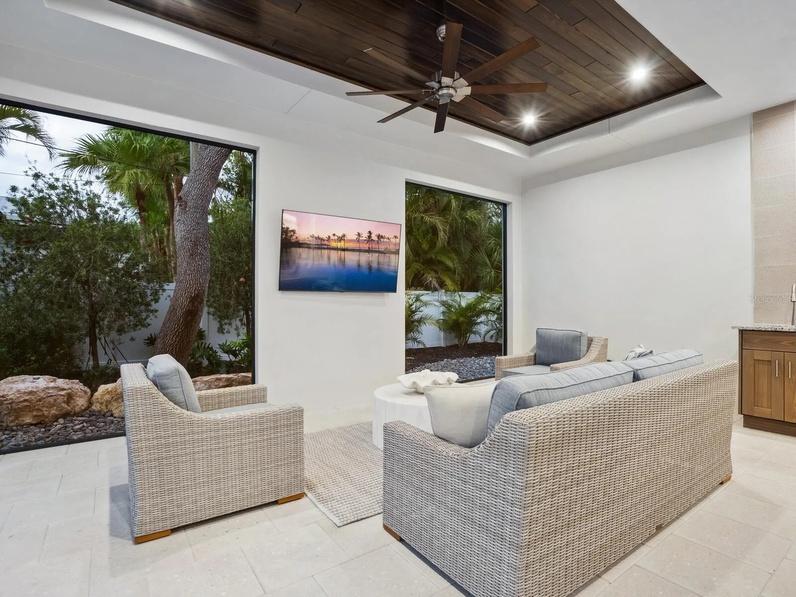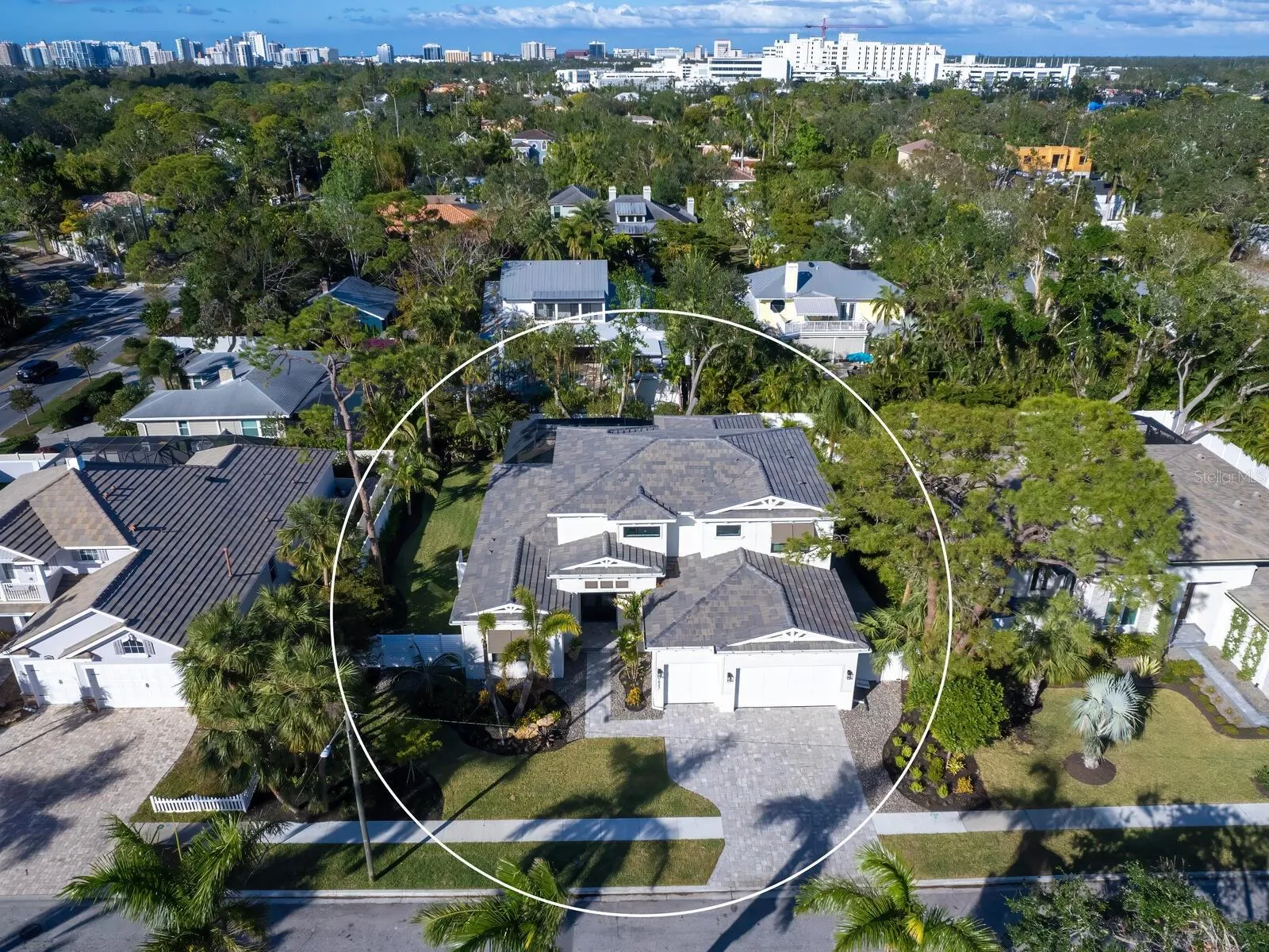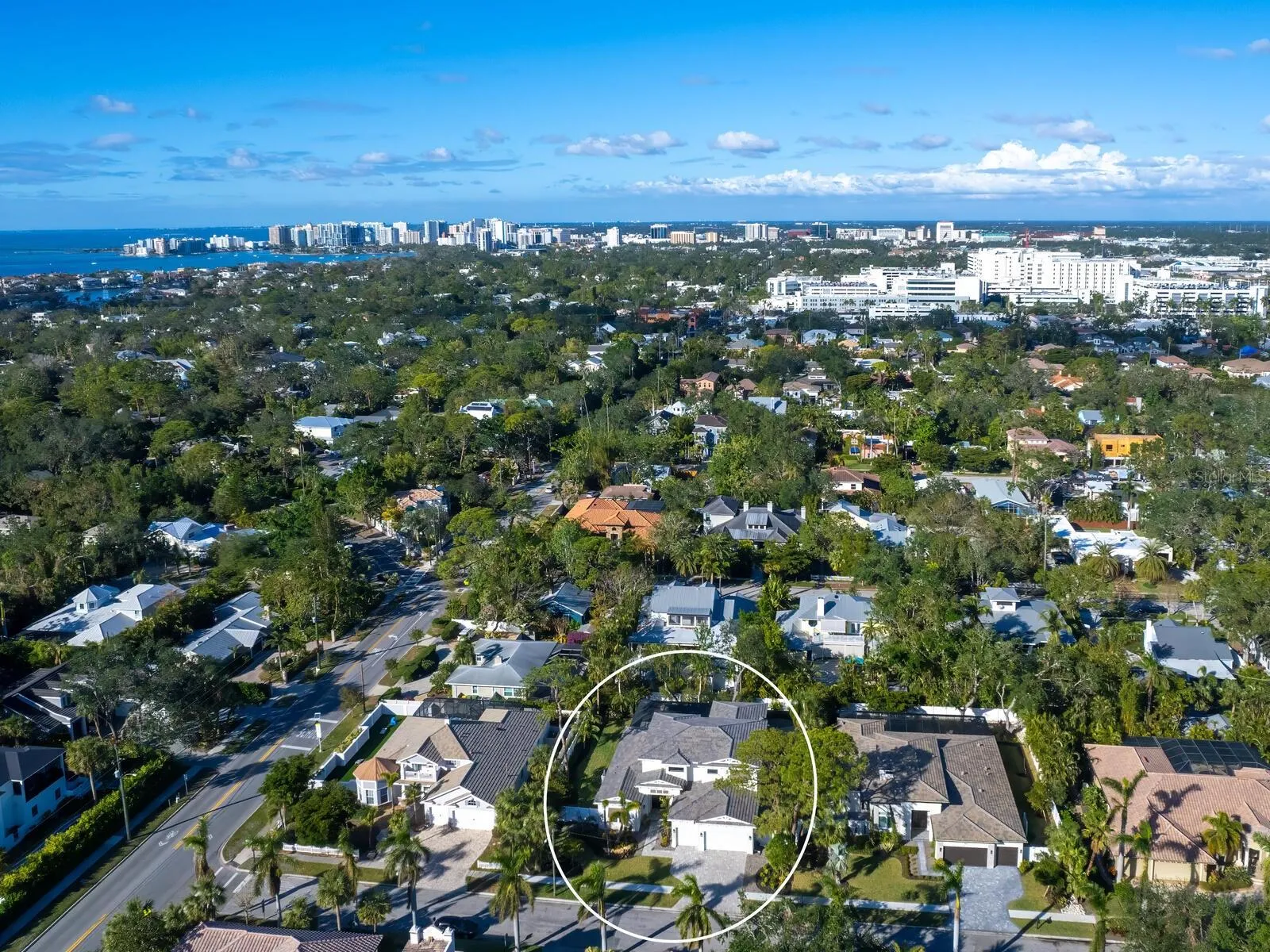 The “St. Michael” is award-winning Allegra Homes’ 2025 fully furnished model home supremely located just south of downtown Sarasota’s cultural epicenter in the coveted West of Trail area where residents know first-hand what a wonderful community they live in. Prepare to be captivated by the seamless fusion of modern design, artful nuances, and stylish sophistication. Every detail has been curated to create an inviting ambiance of gracious family living for years to come. This Coastal 4 bedroom, 4.5 bath luxury property spans 3,970 sq. ft. of open living offering unrivaled comfort and tranquility. Giving the home a feeling of expansiveness, the grand foyer opens to reveal the great room’s 2-story wood-beamed ceiling highlighted by a gorgeous chandelier. Clerestory windows fill this room with natural light and 2 glass sliders frames the alluring outdoor living area, inviting the outside in. The entire back of the home is dedicated to the screen enclosed space offering a heated saltwater pool/spa, covered dining and lounging areas with large screen TV, and year-round kitchen with deluxe cooking amenities. While enjoying a glass of wine, the evening sky hosts unforgettable sunsets painted in vibrant hues of yellow, red and orange. This fascinating oasis is accessible through a wall of glass sliders from the bonus room offering a wet bar and pool bath. The backyard is fenced for privacy and safety, and the lush landscape has been professionally designed and executed to perfection. An elaborate island kitchen is specially-equipped with the best in luxury appliances and will satisfy every desire of your home chef. The aptly sized dining room with a built-in buffet and lovely pool view will become a favorite spot to savor time spent with family and friends. The primary suite with adjoining study is a true retreat from the ordinary with an amazing drop tray tongue-and-grove ceiling, relaxed sitting area, direct access to the pool, expansive walk-in closet, separate double vanities, and a tastefully tiled stall encompassing both a rainfall shower and glamorous soaking tub within its 8 ft. glass walls. The elegant staircase with floating steps and glass railing takes you to a second bonus room, 2 additional bedrooms and a bath. So many other great features are included like a 3-car garage, custom light fixtures and fan, hurricane impact Low-E windows and sliding doors, stone faced TV wall in great room flanked on both sides with beautifully lit glass shelves, separate A/C system for the owner’s wing, optional elevator shaft or wine room, paver drive and walks, hidden pantry and irrigation system. For families with elementary age children, it’s just a short walk or bike ride to top-ranked Southside School. Their exemplary academic achievements have garnered them as a National Blue Ribbon School. You’ll love to explore nearby Southside Village, a stroll-around shopping district where you’ll discover an eclectic blend of galleries, trendy boutiques, a popular gourmet market, and restaurants and taverns with sidewalk seating. This fresh and newly built residence is the outstanding creativity and vision of Sarasota’s premier custom builder, Allegra Homes. 1827 Morris Street is truly a unique opportunity among Sarasota’s new luxury home market and must be experienced in person to be fully appreciated.