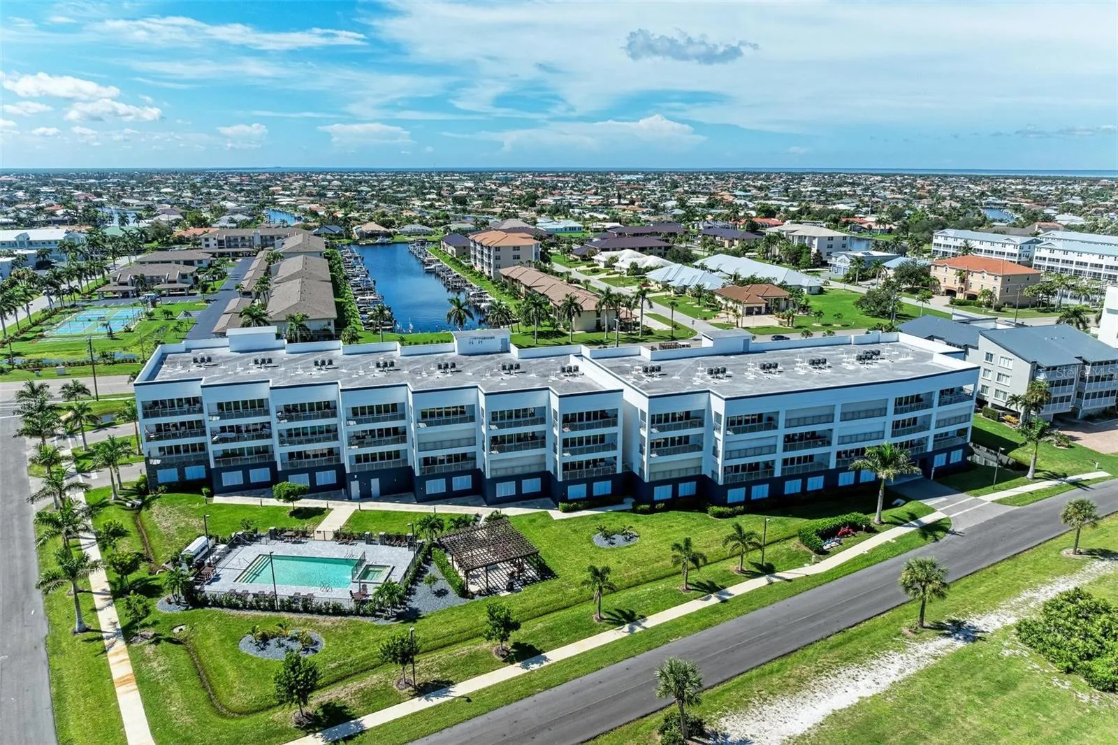 Don’t miss out on a front row seat to all of the great summer shows on the harbor from your balcony, including fireworks on the 4th of July! TWO PARKING PLACES! Gorgeous TOP FLOOR UNIT at Paradise Pointe, Punta Gorda Isles’ newest LUXURY CONDO COMPLEX with UNOBSTRUCTED VIEWS of CHARLOTTE HARBOR, SUNSEEKER RESORT, FISHERMEN’S VILLAGE, and more! TONS OF UPGRADES and customizations await in this unit, with beautiful plantation shutters, upgraded light fixtures, high-end appliances, added electrical components for ease of use, updated plumbing fixtures, and new paint!. It also has 2 under building parking spots-SPACE 5 &6 with 4 storage containers! Each unit has 174 square foot covered & tiled balconies overlooking the harbor with a wall of impact rated pocket sliders that open up the interior of the unit to the outdoors. Inside, find 24″x”48″ porcelain tile throughout with solid wood doors, quartz counters, soft close cabinetry, custom trim work and ceiling details, fans both inside and outside, with a great layout where every square inch of space is utilized perfectly. The guest bedroom has an en-suite bathroom and walk-in closet, as does the master suite, with separate soaking tub and glass/tile shower with dual vanities. An inside utility room with extra cabinetry and a storage closet are just down the hall along with a 1/2 bathroom located just off the main living areas for guests. The kitchen, dining, and living areas are all open and perfect for entertaining, with beautiful finishes from top to bottom. The property was built with concrete pilings, walls, and floors, and impact rated windows and doors, and has upgraded high-speed internet access/security in every unit. Paradise Point has a massive swimming pool and spa, keycard access to the secure lobby and elevator, 24 camera security, luxurious landscaping, a fire pit/recreation area, and a grilling area. Nearby to Fishermen’s Village, Downtown Punta Gorda, Ponce Park & boat ramp, great golfing, fishing, boating, marinas, restaurants, and other great local waterfront amenities, along with access to several airports for easy travel, come see why Paradise Pointe should be your new home for the Southwest Florida lifestyle of your dreams! BE SURE TO CLICK THE FULL VIRTUAL TOUR LINKS FOR DETAILS!