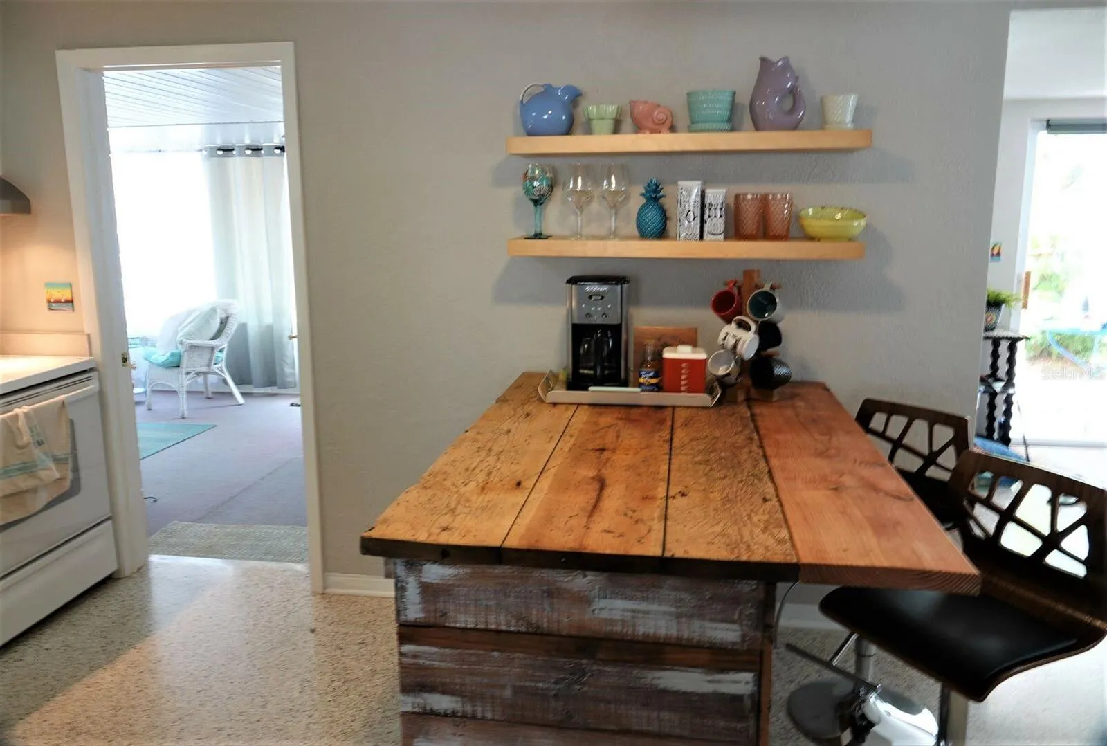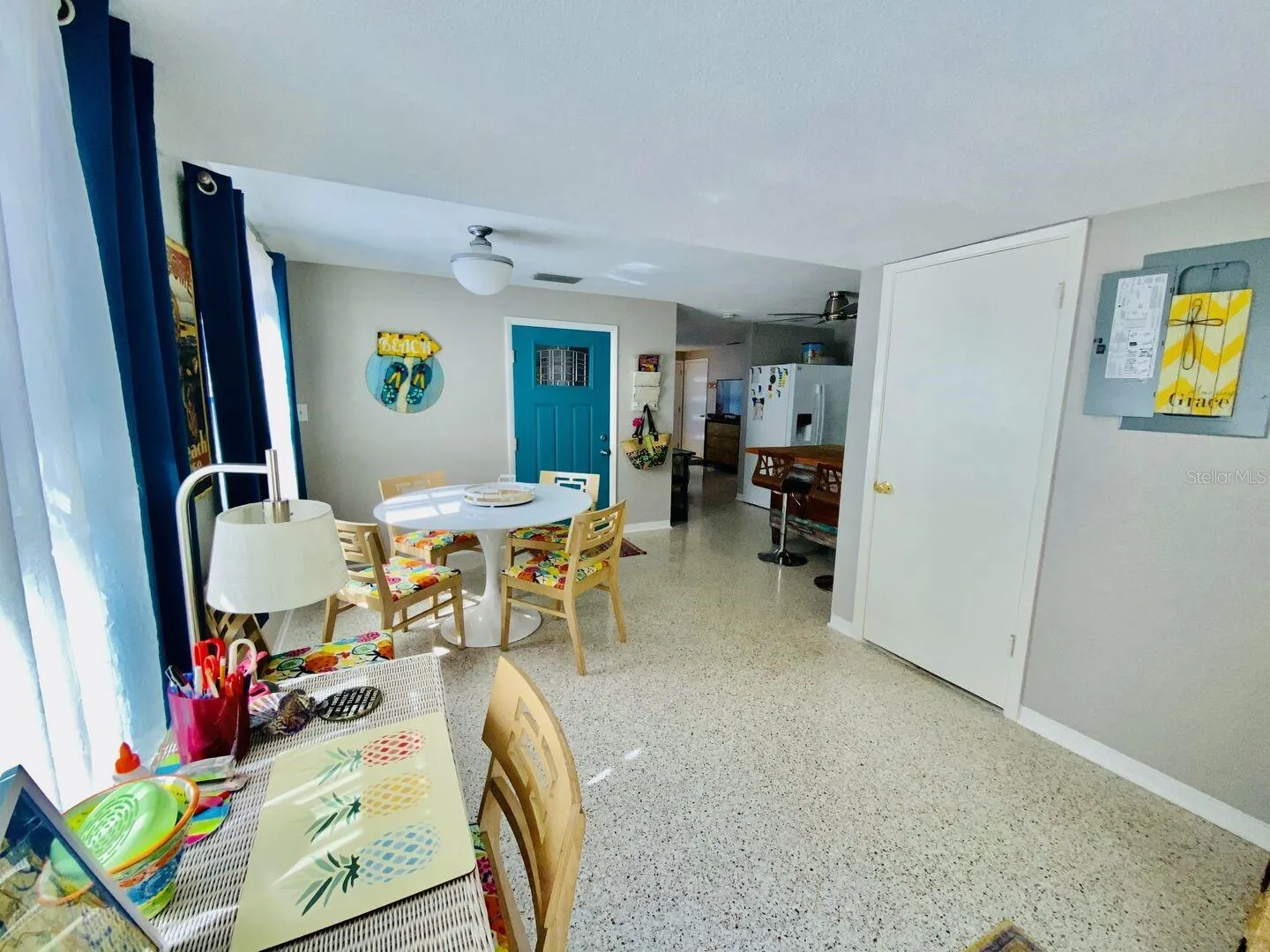 This lovely home is tastefully decorated in a mid-century modern beach theme with gleaming terrazzo floors and has all you need to enjoy your home away from home! The kitchen is bright and contemporary, and its large island is made of reclaimed wood, which is the essence of beach art in the heart of the house. The dining area seats up to 6 at the table with 2 bar stools on the island for extra seating. The living room is exceptionally comfortable with a nice sectional so everyone can kick back and enjoy a movie on one of the home’s three smart TVs after a long day in the sun at our amazing beach. There is also a second living space in the Florida room with its independent wall A/C unit and a queen-size sofa sleeper. The primary bedroom features a brand-new California King mattress, and the 2nd bedroom has a queen. A completely updated 2nd full bathroom and washer and dryer add to your comfort and convenience. Theenced-in yard is great for cooking out or relaxing in privacy!