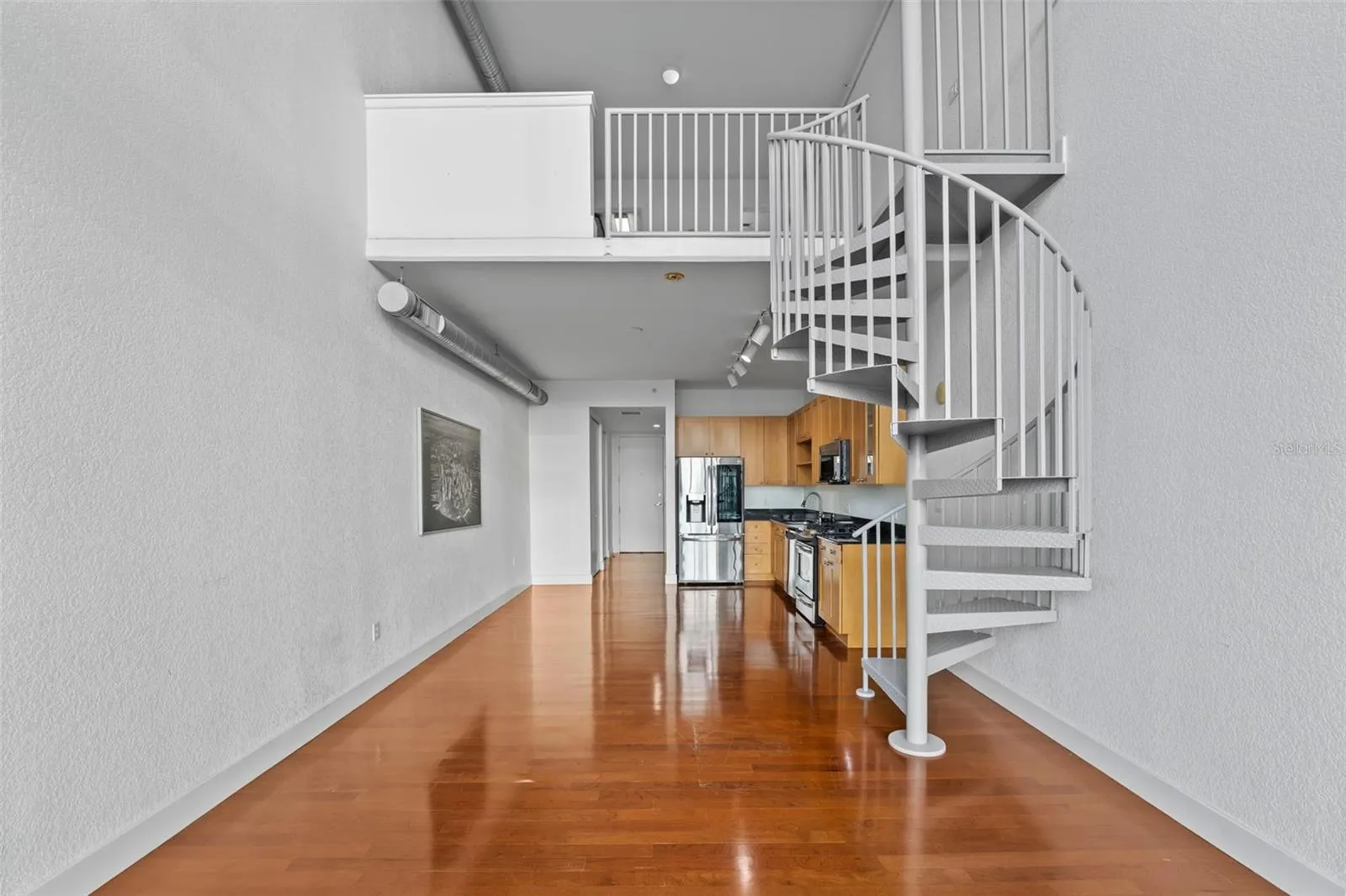 Step inside #1214 at the luxury VUE high rise residences. This rarely available urban 1br loft has amazing sunset views of the city beautiful skyline. As you enter you will be greeted with tons of natural light entering the dramatic floor to ceiling windows powered with costumed electrical blinds. Gorgeous wood flooring is laid out in the kitchen and living area. The kitchen features stainless steel appliances and gas cooking range. The living area is spacious and open which is great for entertaining. The primary bedroom upstairs has plenty of room for a Cali- King size bed with a deep walk in closet. Wine down on your spacious balcony as you capture breathtaking views of the city. This condo is the epitome of downtown living. This unit comes with 1 assigned parking spot. Washer and dryer included. Come and experience luxury living at the VUE High rise. Schedule your private showing today! The Vue residences is a modern retreat conceptualized by the ultra-modern 7th floor pool deck, tennis courts, basketball courts and world class residence gym. The Vue was designed as an all-glass contemporary high-rise option for those of us looking for a modern condo with an attention to detail and amenities. The Vue delivers its residences with concierge, security, 24hr fitness, club room and valet for your guest. The VUE is within walking distance to all Downtown Orlando entertainment, restaurants, Lake Eola, farmers market, Kia Center, INTER and CO Stadium, Camping World stadium, coffee shops and the Dr Phillips Performing Arts Center.