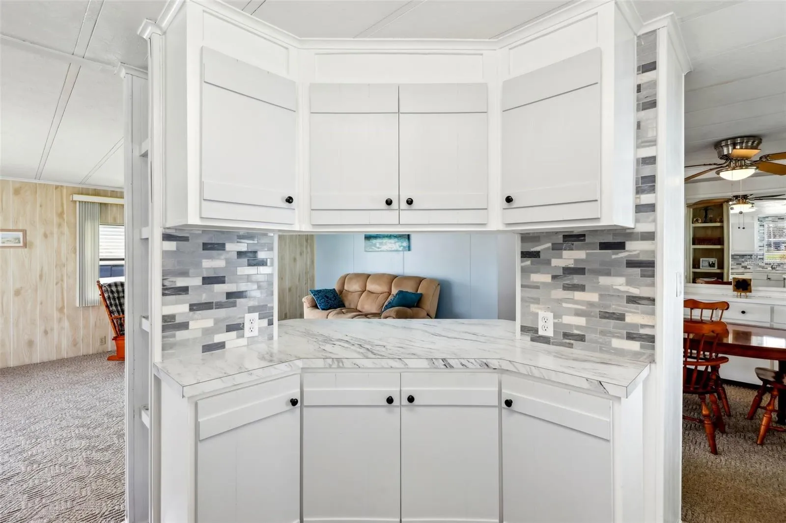 Discover the charm of this beautifully updated 2-bedroom, 2-bathroom manufactured home in Harbor Oaks, a vibrant 55+ active retirement community nestled along the shores of Lake Griffin. With 1,040 sq. ft. of thoughtfully designed living space, this home provides modern updates and the perfect setting for your next chapter. The kitchen is tastefully updated, blending style and functionality, while updated flooring throughout adds to the fresh and welcoming atmosphere. In 2021, the hurricane strap tie-downs were brought up to current code, providing added stability and peace of mind. Outside, a freshly paved river rock driveway enhances convenience and curb appeal.