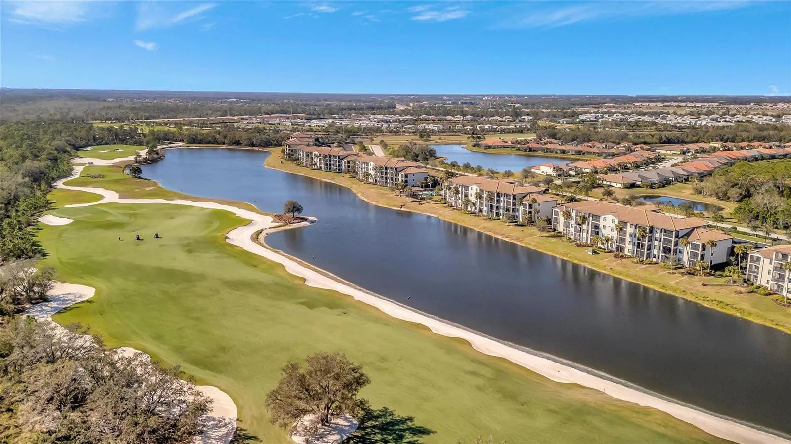 This is a rare find, 3-bedroom, end unit, split bedroom floorpan with unobstructed water and golf course views. Being sold TURNKEY FURNISHED in the gated maintenance free community of Lakewood National Golf Club. Condo fee INCLUDES MEMBERSHIP to a 36-hole Arnold Palmer-designed golf course, internet, cable, water, sewer, and trash. As an end building you have amazing views from the great room and lanai with plenty of natural light coming from the extra windows that comes with only this floor plan. The Kitchen offers stainless steel appliances, solid wood cabinets and granite countertops. Lakewood National is a gated community with 24-hour manned guard gate, a luxurious clubhouse with fine dining, a tiki bar, and a state-of-the-art fitness center. Residents have access to luxury spa services as well as tennis, Pickleball and bocce courts. The location with easy access to downtown Lakewood Ranch, sports facilities, shopping, dining, and top-rated schools. Lakewood Ranch has been the #1 Multi-generational planned community for six years running. Come see why so many have chosen to call this place home.