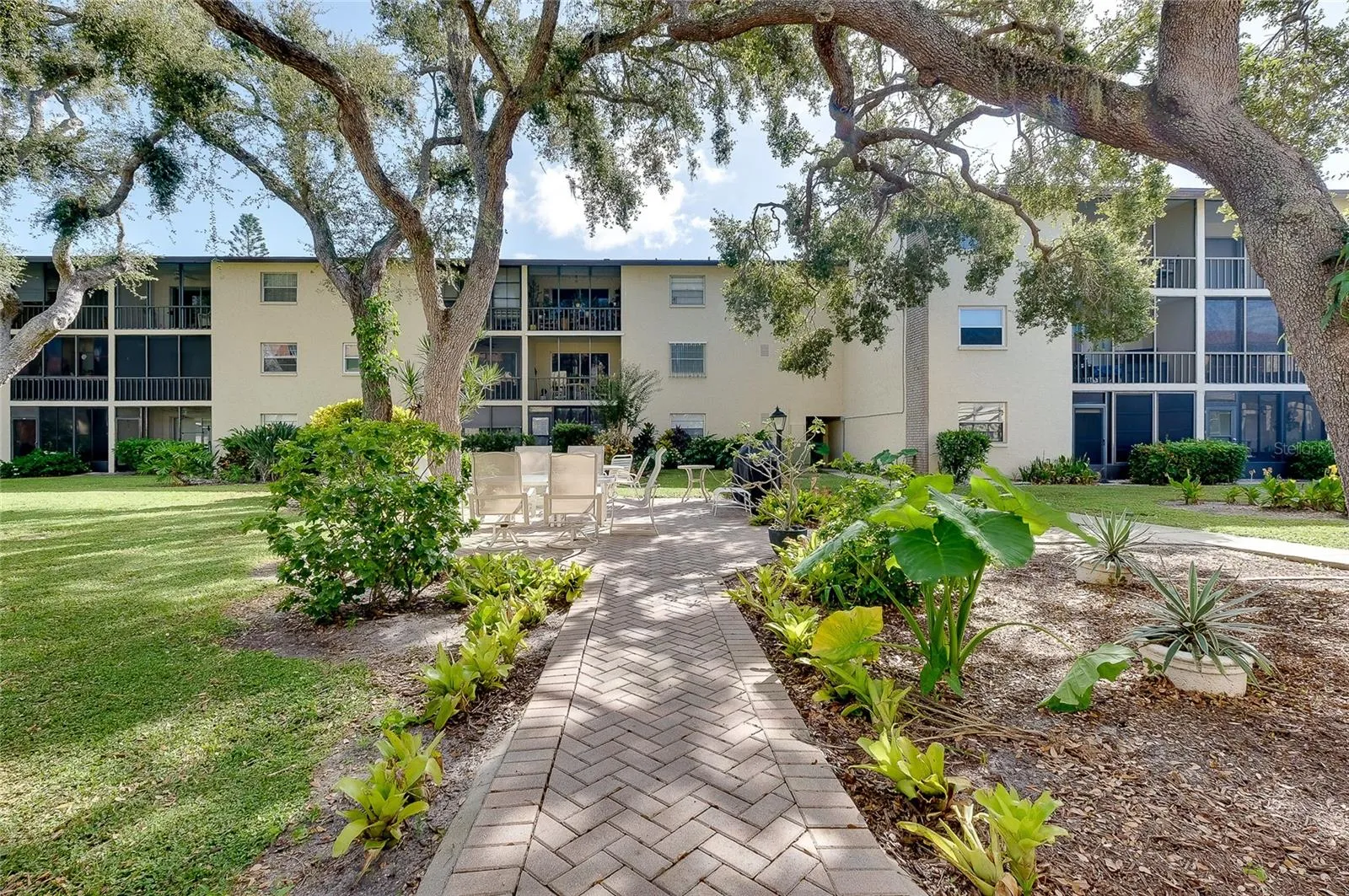 Welcome to Tregate Manor! This ground floor two bedroom two bath home needs nothing and is ready for a quick move in. Located under a mile from Crescent Beach you can live a vacation lifestyle in an affordable condo. This kitchen is well appointed and opens right up to the dinning and living room. Plantation shutters throughout for charm and privacy. The primary bedroom is generously sized with a large walk in closet. Second bedroom offers built in cabinets for additional storage. The lanai is situated over looking a beautiful landscaped seating and pool, it is perfect for your morning coffee or evening cocktails. This 55+ community is the perfect place for your retirement or winter retreat. Enjoy a dip in the large covered pool or socializing in the lush courtyard with neighbors. You are sure to make plenty of new friends in the community with plenty of group outings and get-togethers. Low HOA fees in a stable association that include your cable, trash, water. There is even a private gate so you can walk to Publix, shopping and restaurants. Everything the vibrant city of Sarasota has to offer is close by and waiting for you to enjoy!