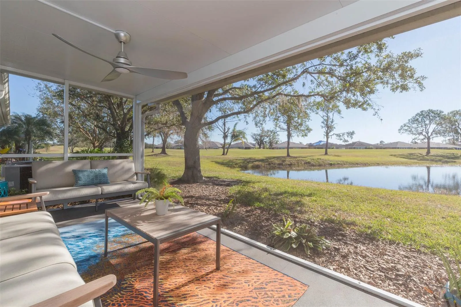 MOTIVATED SELLER! Welcome to the GATED community of Kings Point! This active 55+ community is located in the heart of Sun City Center and boasts endless resort-style amenities. Villeroy Greens is arguably the BEST street in all of Kings Point and you will feel right at home by the welcoming committee and monthly block parties. The custom, lush landscape provides great curb appeal from the moment you arrive. Nestled on a peaceful POND LOT between mature oak trees, much time will be spent on the 8×40 ft screened-in lanai looking at the water views and wildlife. Inside, you will find an open-concept layout featuring 2 bedrooms, 2 full baths, and a den that is the perfect flex space for a home office, formal dining room, or sitting room. The large windows in the Florida room just off the living room showcase the water views and let in an abundance of natural light. The spacious kitchen offers plenty of cabinetry for storage, a center island, and an attached breakfast nook complete with a bay window. 1-year warranty offered on all appliances! The primary bedroom boasts a connecting door into the Florida room, two walk-in closets, and an ensuite bathroom with an oversized vanity with dual sinks, glass shower, and a separate garden tub. Down the hall, the secondary bedroom is tucked away with the remaining nearby full bath. The condominium is move-in ready and FULL OF UPGRADES such as new A/C (2023), hot water heater (2023), Roof (2017), Electric vehicle charging station and remote-controlled garage door screen, storm-rated front & back windows, motorized hurricane shutters, gutter guard system, whole home reverse osmosis system and water softener, and luxury vinyl/tile throughout- no carpet! As an added bonus, there is indoor laundry with a washer/dryer that convey with the sale of the property. Community amenities include 2 clubhouses, 9 indoor and outdoor pools, an 18-hole golf course, Serenity Spa and Salon, fitness centers with state-of-the-art equipment, pickle ball courts, tennis courts, dog park, walking trails, lawn bowling, 200+ clubs to join, Veterans Theatre and cafes. In addition to the use of all amenities, the monthly HOA fee covers the water, trash, sewer, cable/internet/phone, irrigation, lawn care, exterior maintenance, pest control, and roof maintenance/replacement. Villeroy Greens has a strong reserve with NO special assessments due from the owners.