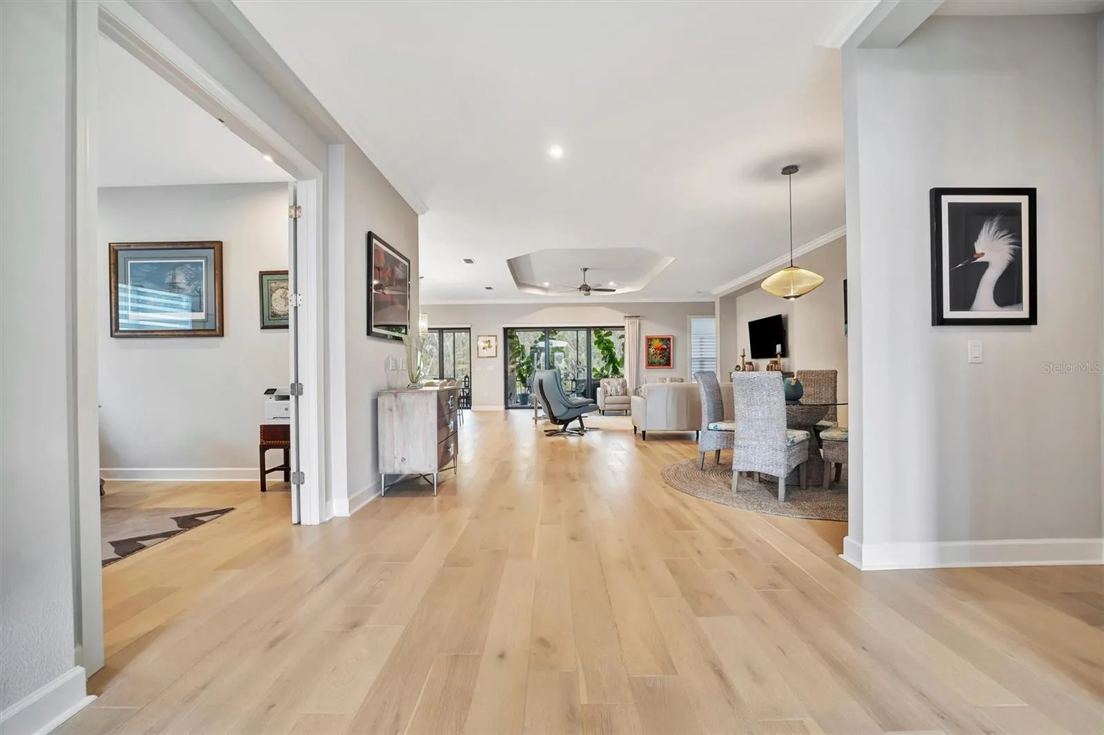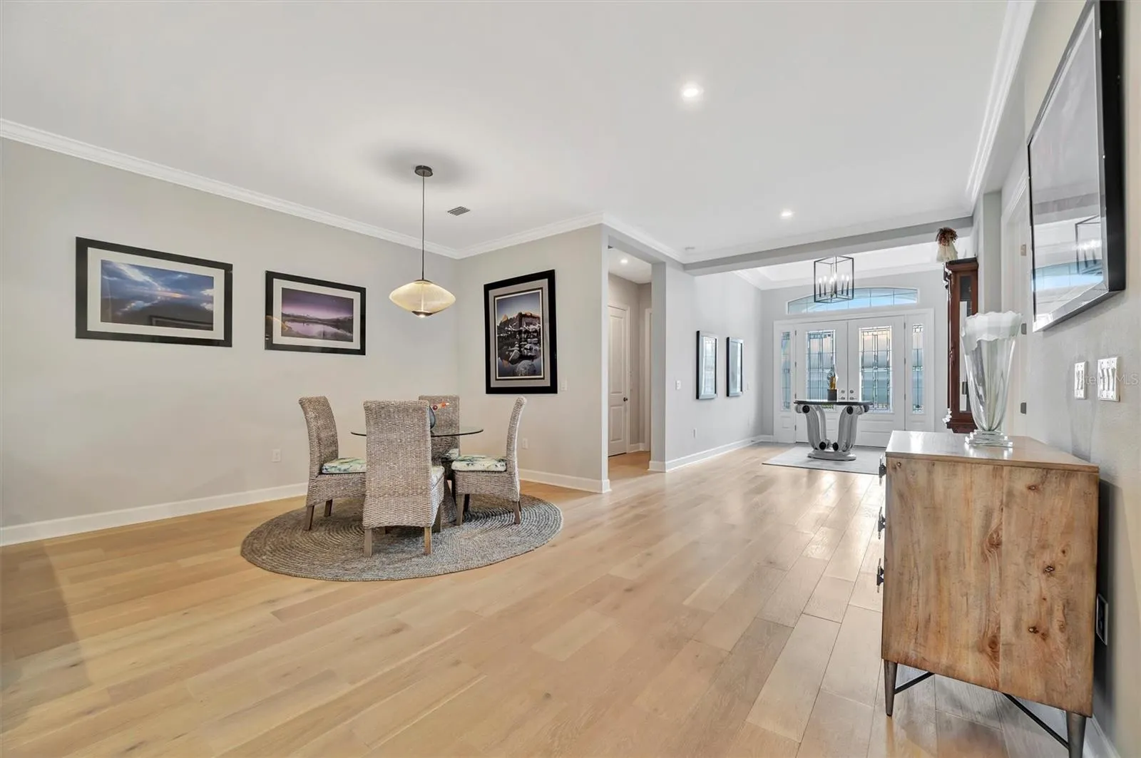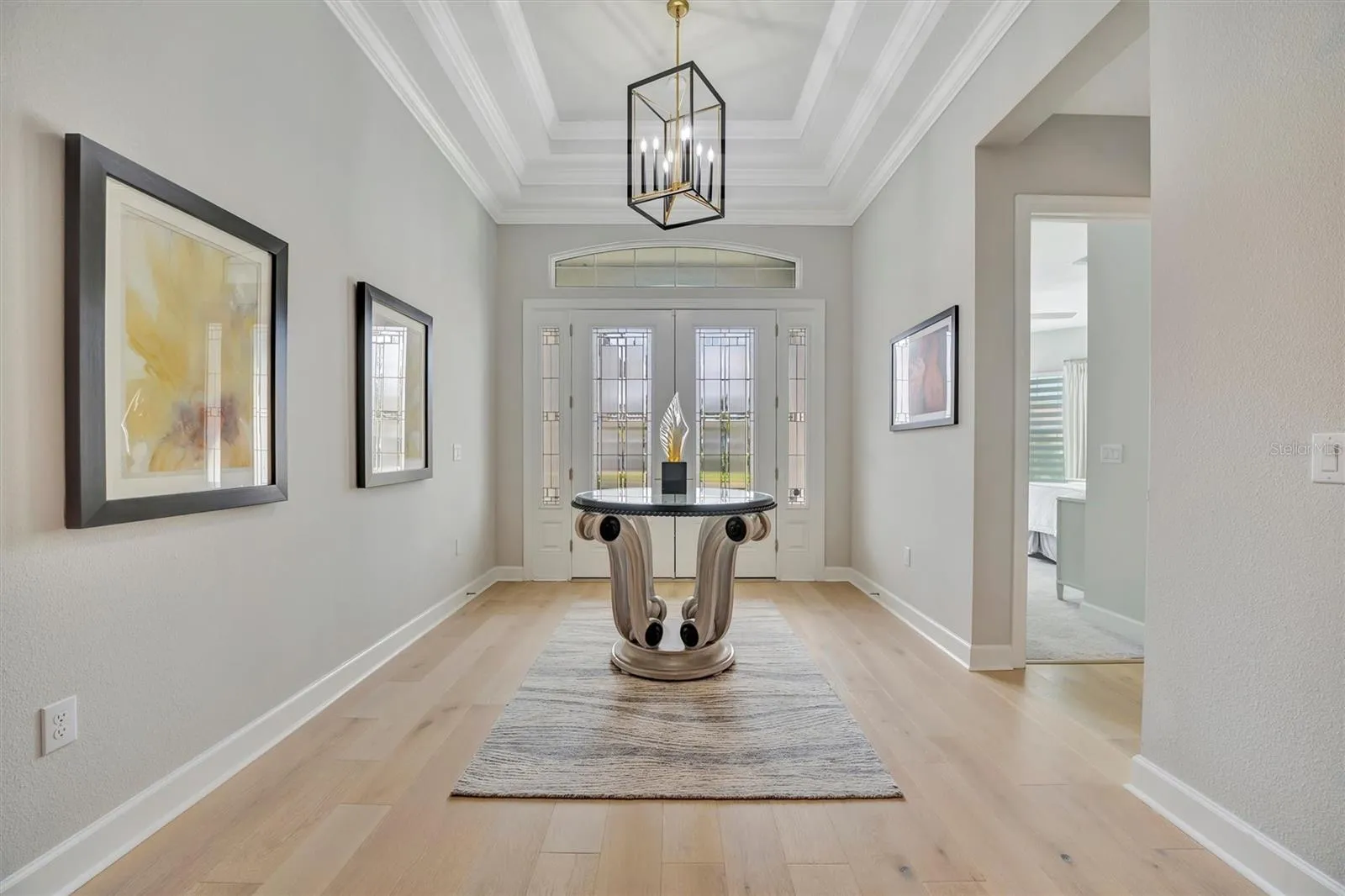 Florida luxury living at its finest! This stunning 3 bed/3 bath home is located on a conservation lot with a fenced back yard in the desirable community of Esplanade at Azario Lake offering a blend of comfort, style and luxury. This beautiful Palazzio model is situated in a tranquil neighborhood with easy access to the area’s vibrant amenities, making it ideal for seeking both convenience and serene living. This well-maintained gated community boasts a spacious, open-concept layout that is perfect for both family living and entertainment. As you enter the home, you are welcomed into a bright and airy foyer with soaring ceiling, large hurricane impact sliders and an abundance of natural light. The modern kitchen is a chef’s dream with top-of-the-line appliances, an extensive quartz island, gas cook top, walk-in pantry, and an abundance of storage making it ideal for meal preparation and entertainment. The home includes a luxurious master suite with a huge walk-in closet and en-suite bathroom with an amazing shower. All rooms are designed with high-end finishes, offering both functionality and style. The den offers additional space with flexible options such as an office or creative space for hobbies. The home also includes a high-end water treatment system and all lighting was upgraded after closing. The home’s extended lanai provides a perfect space for relaxation and entertainment. The lanai is plumbed for an outdoor kitchen and wired for TV making it ideal for outdoor activities and enjoying Florida’s beautiful weather. The backyard is perfect for adding a pool. Living in Esplanade at Azario Lake offers residents access to world-class amenities such as golf, pickleball, tennis, Bahama bar, resort style pool, and a culinary arts building offering on-site world class dining. This home is not just a place to live, but an exceptional lifestyle to experience.