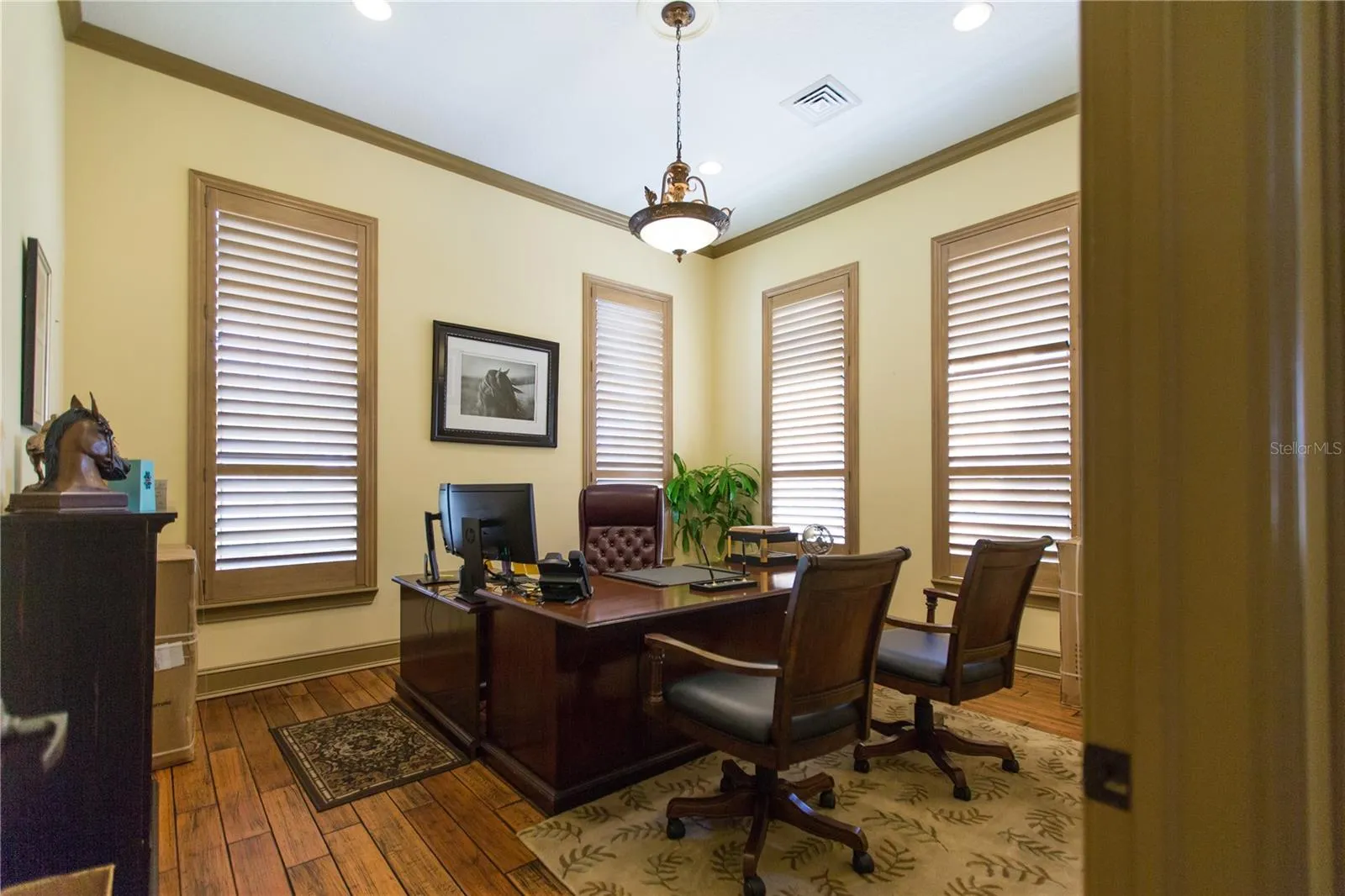 This magnificent property spans 400+/- acres & offers state-of-the-art equine facilities professionally sculpted & architecturally designed for both function & elegance. This estate property is available, for an additional cost, with two simi-contiguous owner’s residence consisting of a 3.3.5 with a 1/1 apartment with 3,988 SF of living area, and a 4/3.5 with 2,428 SF of living area. Elegant office encompasses 3,984 +/- SF of superior craftsmanship, striking brick façade, & durable asphalt shingle roofing. Inside, you’ll find an elegant lobby/reception area, comfortable lounge/meeting room, & numerous private offices, including an executive CEO office complete with beverage bar & a private ¾ bath. Thoughtfully designed layout features a spacious conference room, copy/fax room, & kitchen/break area, complemented by a welcoming exterior-covered porch. The overall quality of construction is simply outstanding. The property has fiber optic internet cabling, offering modern connectivity amidst nature’s beauty.
