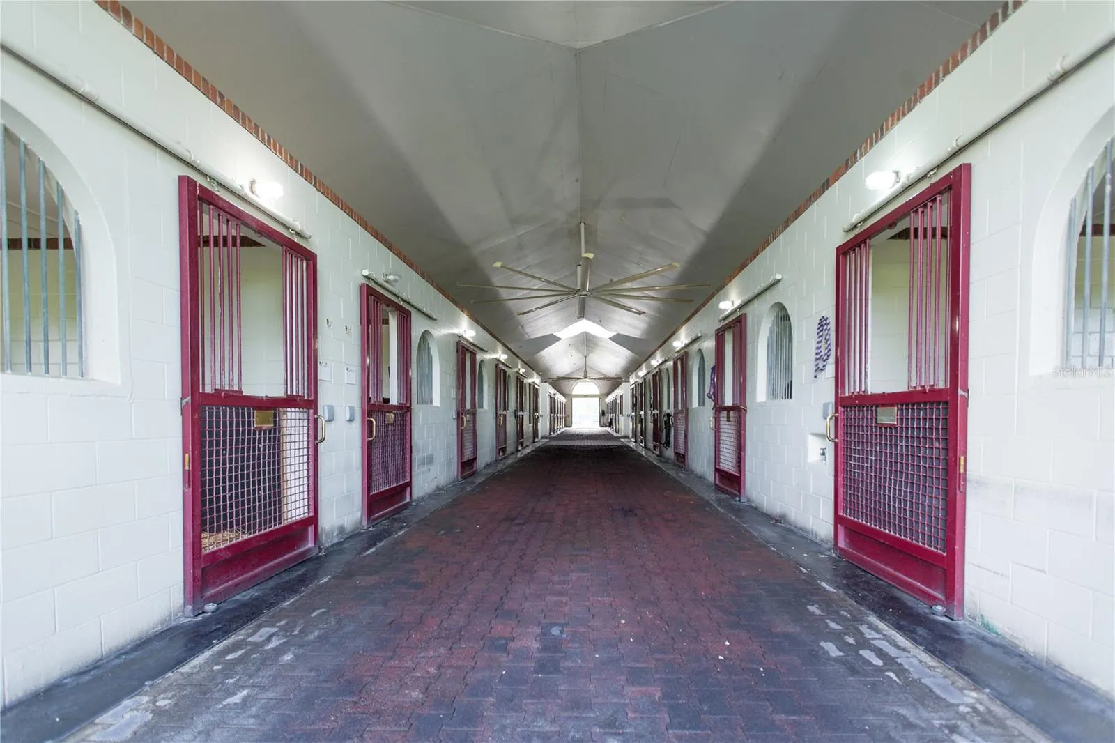 Adjacent to the breeding barn, stallion barns feature durable concrete block construction with charming brick accents and copper, highlighted by an elegant cupola. Each stable has seven spacious 16’X16’ stalls, wash areas with protective rubber matting, and dedicated tack/feed areas. Double-metal entrance doors boast top-notch hardware and decorative windows, ensuring style and functionality.