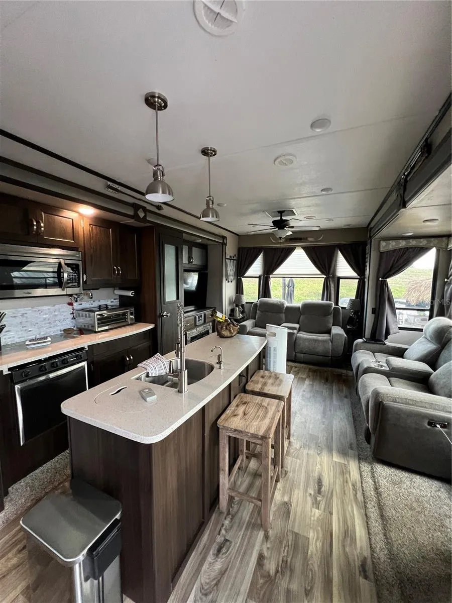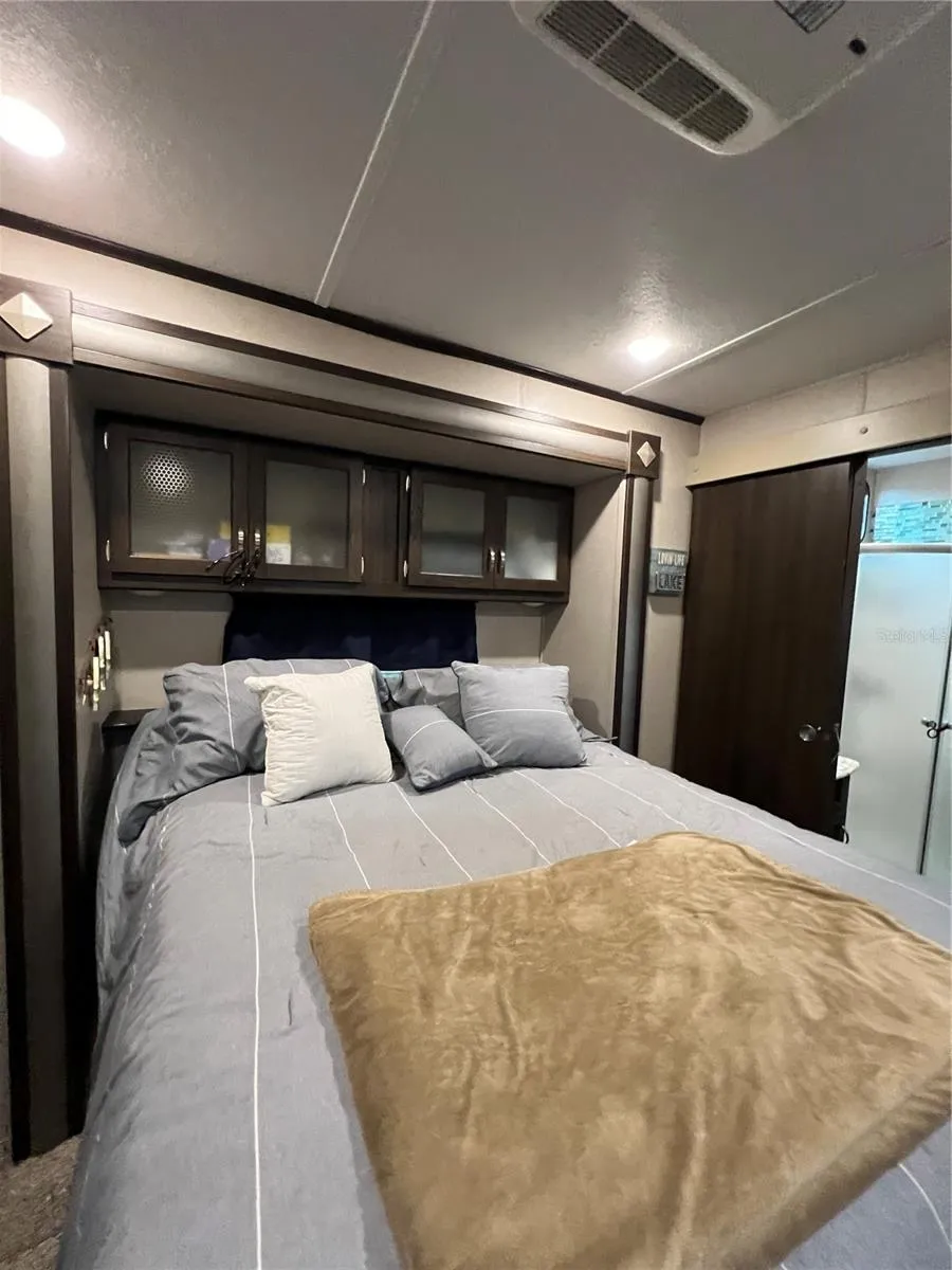 ~Big O RV Resort~ Gorgeous Lot #51 on the Rim canal w/ 2019 40Ft cottage/Residence by Keystone. Laminate flooring, Queen bed- washer & Dryer inside. Carport for the toys. Total outside area is beautiful gray payers, steps down to the canal with lighted matching columns in front & rear of property. BBQ/Party area with built in Tiki hut Bar. Lots of storage. Boat parking right out your steps. Privacy fencing runs down one side. Gated community. All measurements are approximate.