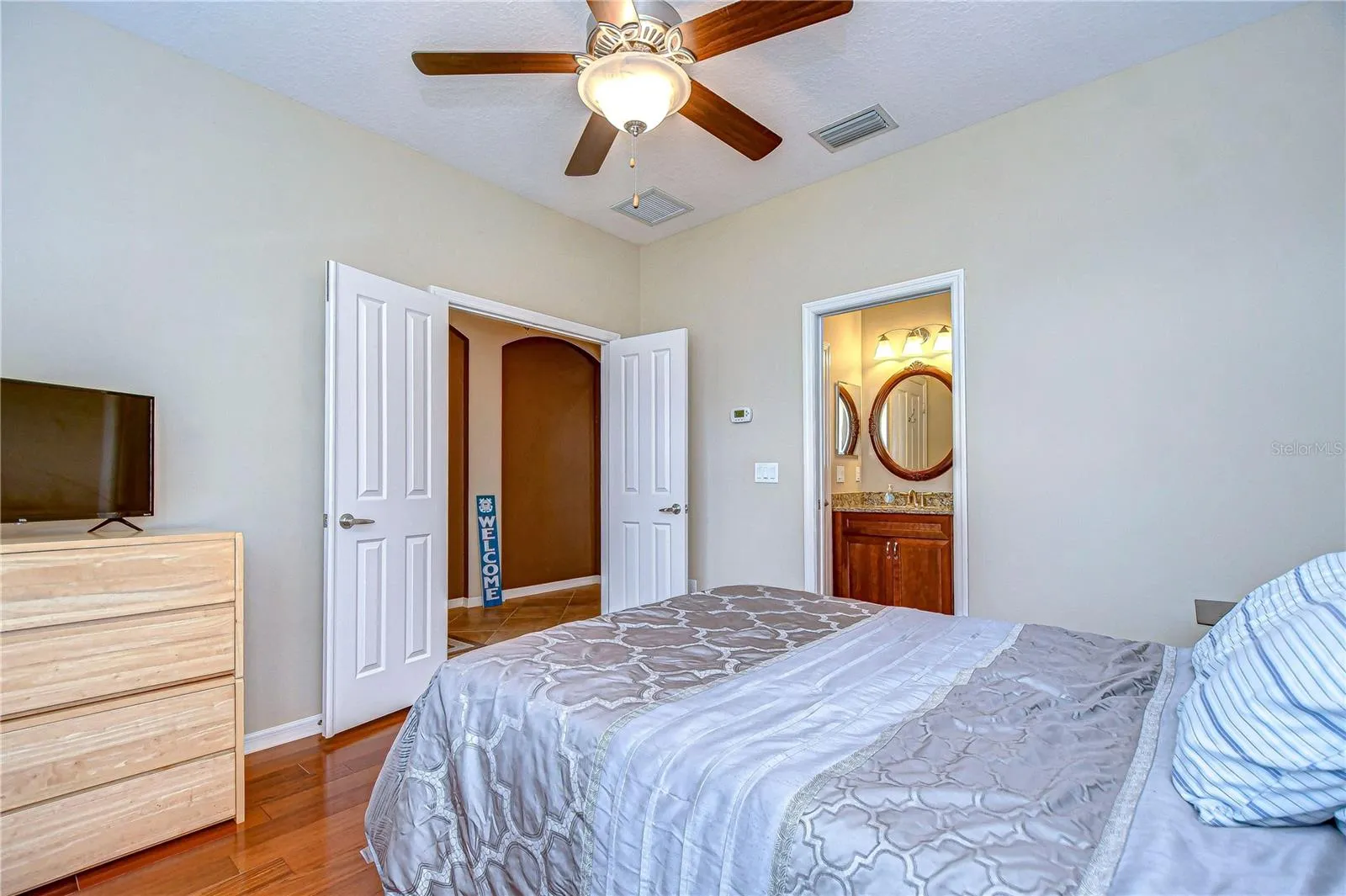 This TRIPLE SPLIT FLOOR PLAN offers ideal privacy. Bedrooms 2 and 3 share a bathroom with pool access, while bedroom 4 has private access to a full bath. French doors with transom windows from the family room lead to a tranquil SCREENED LANAI, recently re-screened ($11K value). The HEATED SALTWATER POOL offers year-round enjoyment, surrounded by a multi-level paver deck with plenty of room for outdoor seating and dining.