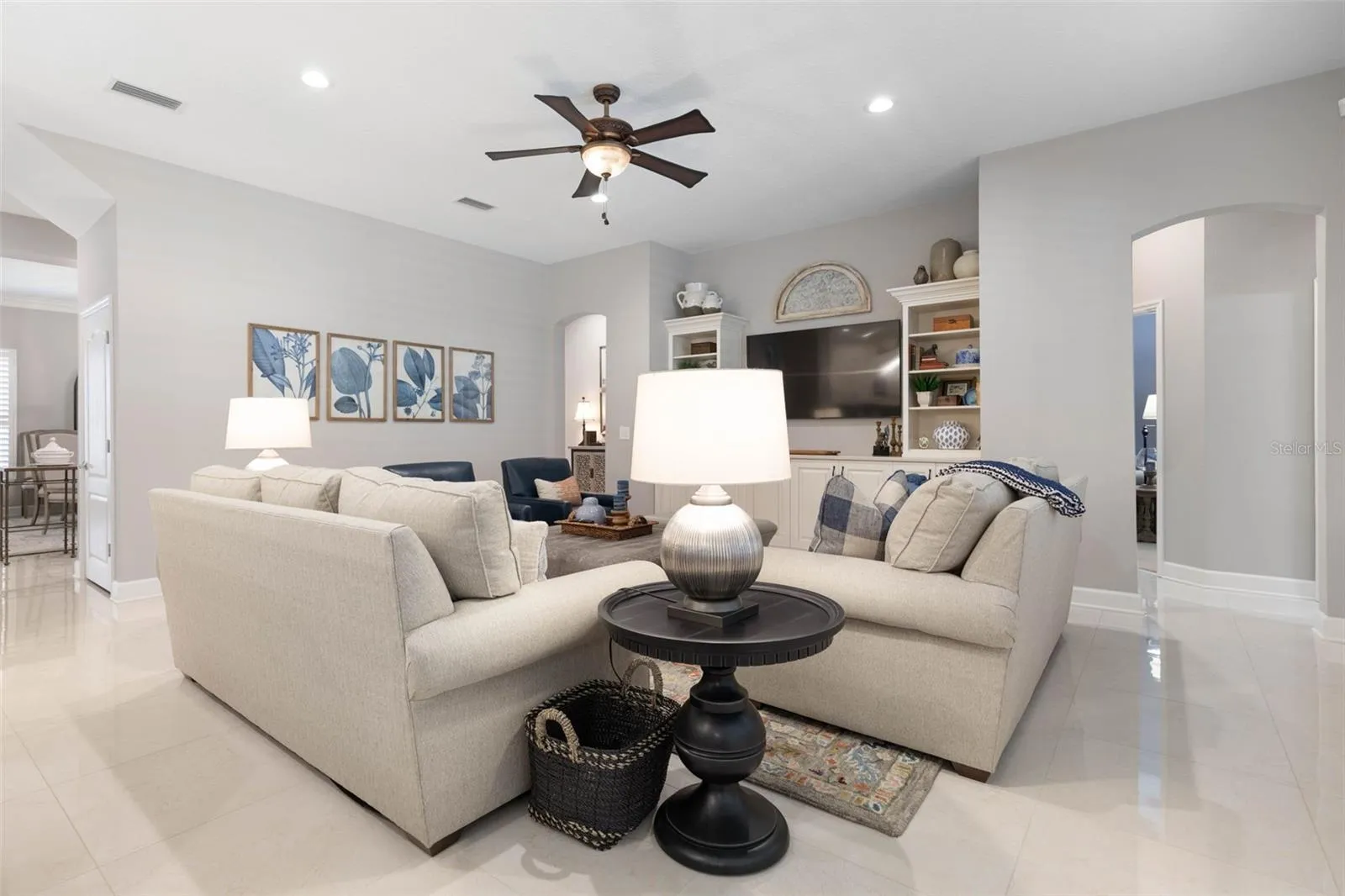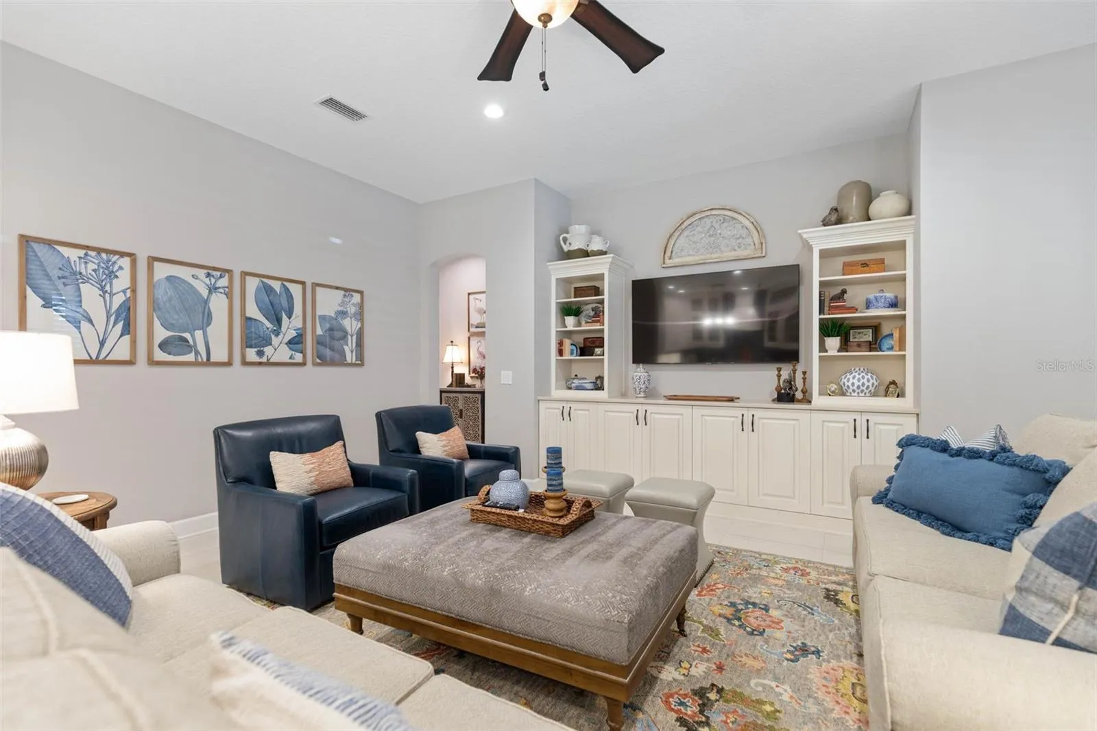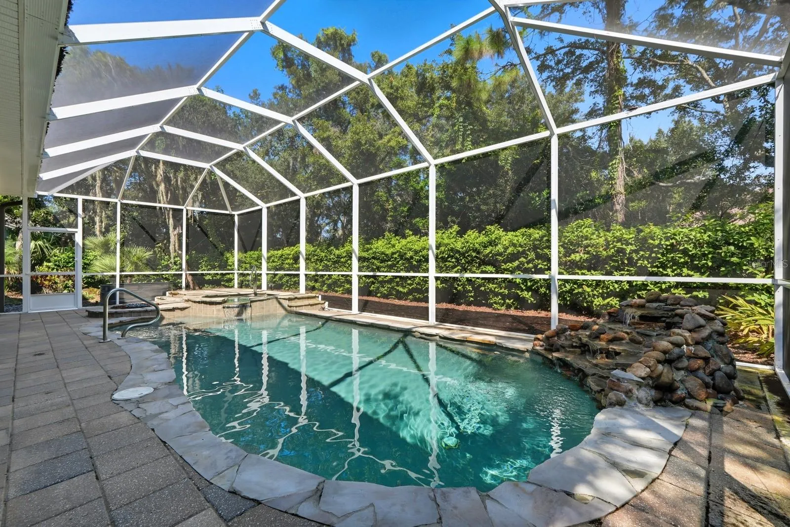 Relax on your very private, covered, screened lanai and dip in the refreshing saltwater pool and spa. Pool features a lovely waterfall and new enclosure. This home has been painted inside and out, has a house air purifier, all new commodes and faucets, new showers in master and pool bath, new built in cabinets in living room, new plantation shutters, DuraSeal lifetime paver sealant on drive way and pool deck, THREE car garage, ADT system, irrigation well, all new landscaping and more! Come visit today and you will want to make this home. Grand Haven is a beautiful well established gated golf community near everything Palm Coast offers and only about ten minutes to our beaches. You really must step inside to appreciate this lovely move in ready home!