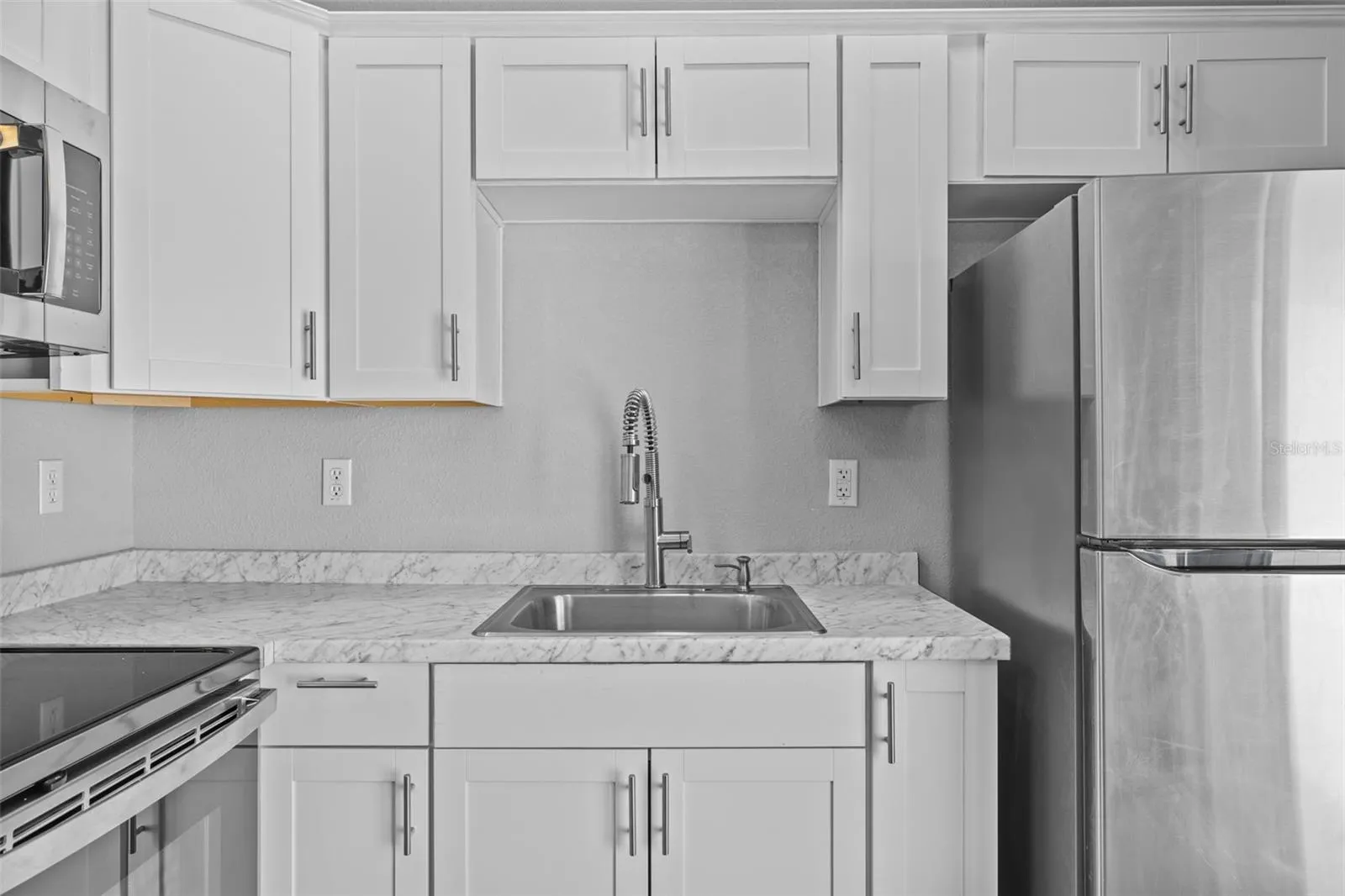The heart of the home is the UPDATED KITCHEN, designed for both style and functionality. It boasts STAINLESS STEEL APPLIANCES, NEW CABINETS, a NEW KITCHEN COUNTERTOP, and a SUPER NICE PULL-DOWN SINK FAUCET. Whether cooking or entertaining, this kitchen meets all your needs.