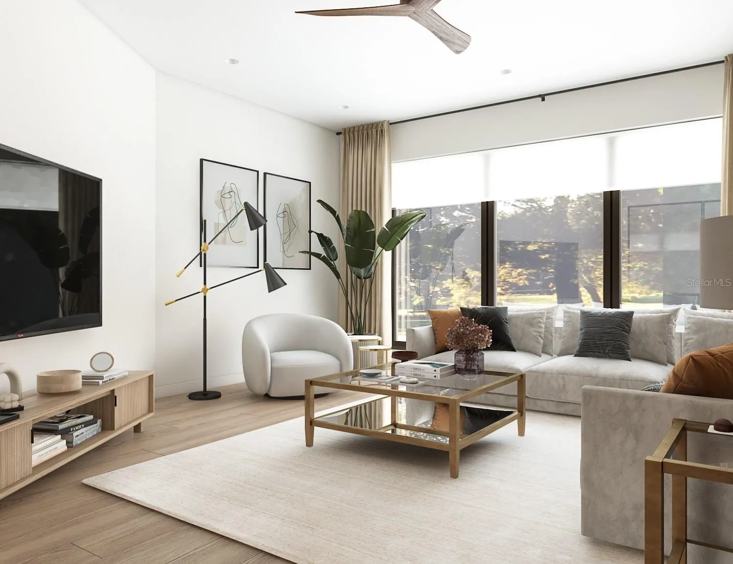 Wake up to the gentle sound of waves, spend afternoons enjoying water sports, and savor beach days that stretch into warm, golden sunsets. The expansive open-concept layout is perfect for both relaxation and entertaining, featuring 80 feet of floor-to-ceiling glass windows and doors that frame breathtaking views of the sparkling pool and serene waterway, creating a seamless connection between indoor and outdoor spaces. The 40-foot-long covered lanai invites you to enjoy alfresco dining and sunset views year-round.