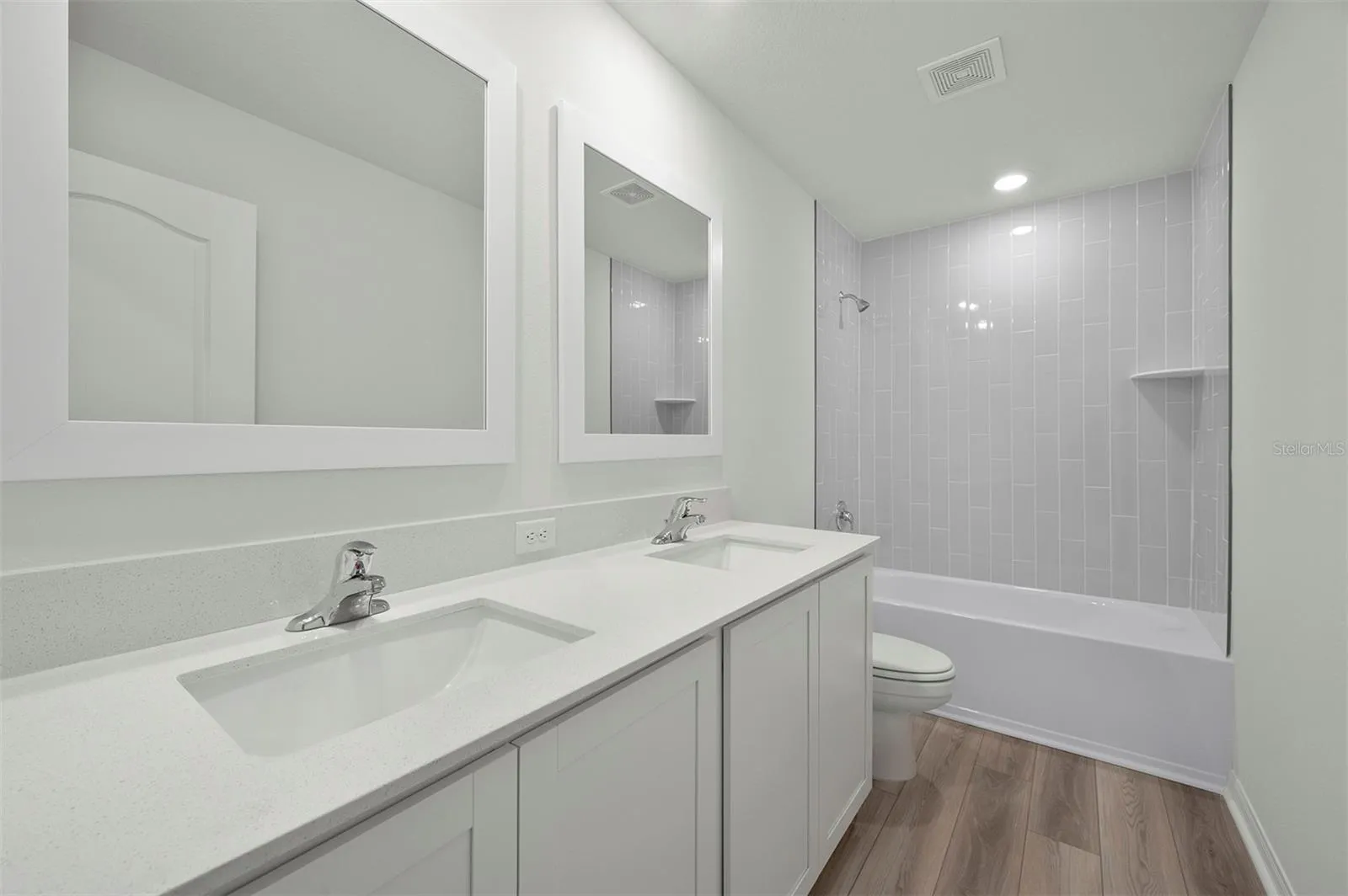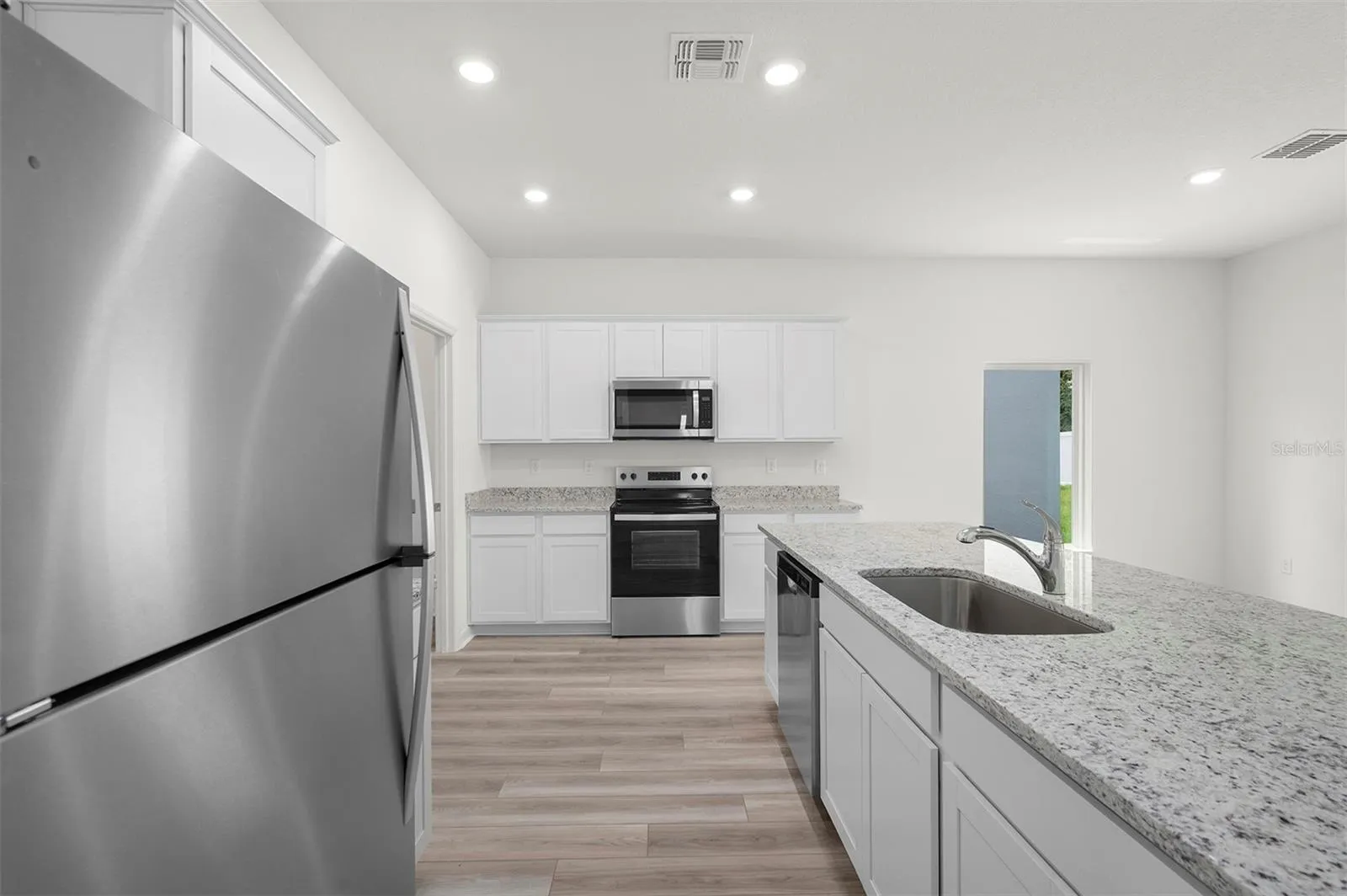 The Useppa plan comes with a host of impressive upgrades and features as part of our CompleteHome™ package, all included at no extra cost. Upgrades include a full suite of energy-efficient Whirlpool® kitchen appliances, sprawling granite countertops, designer wood cabinets with crown molding detail, and recessed lighting, just in the kitchen! Throughout the home, you will find upgrades such as luxury vinyl-plank flooring, programmable thermostats and a Wi-Fi-enabled garage door opener.